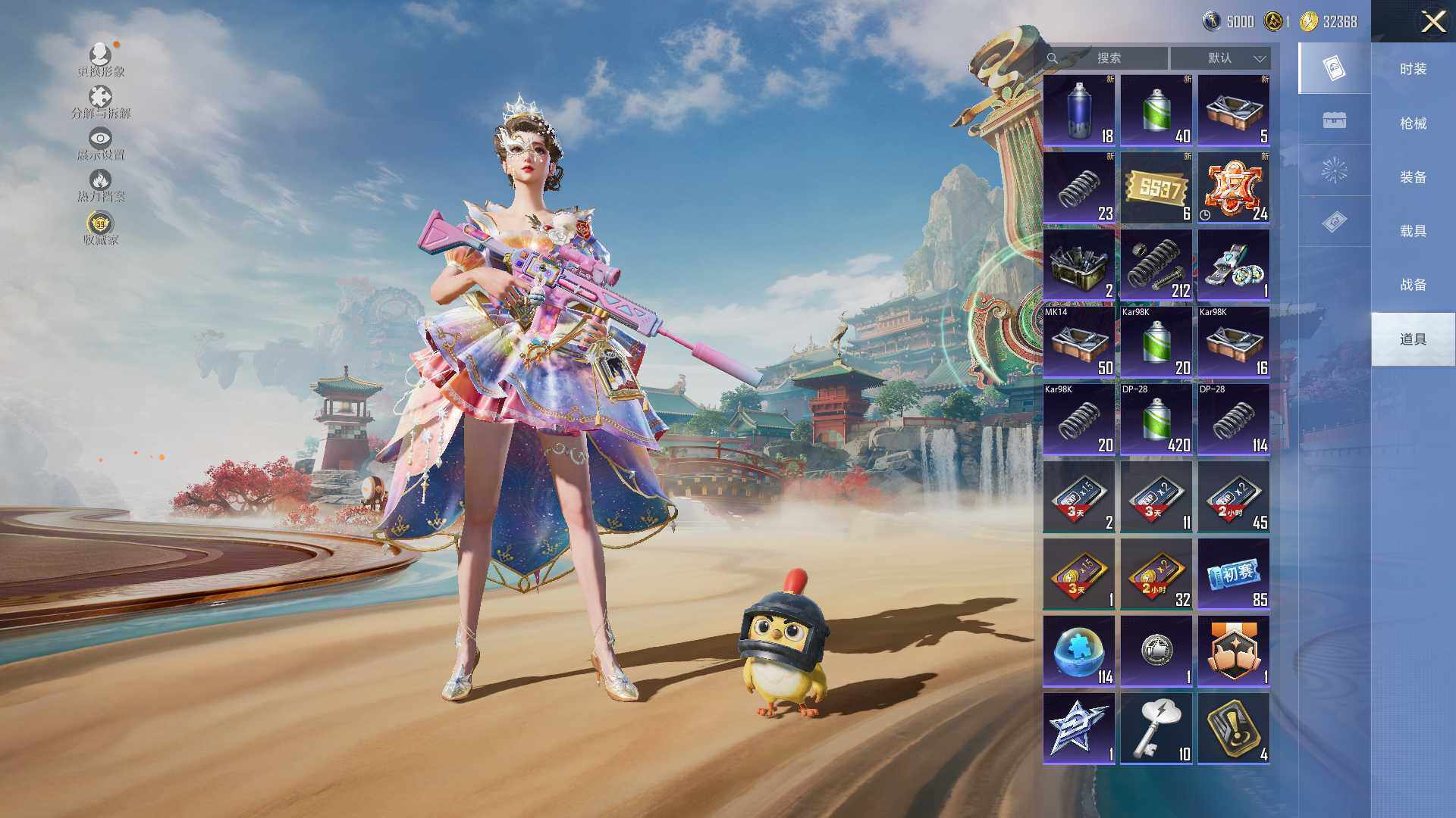 【秒换绑】安卓 手Q-1粉装-9特效枪-0载具-3粉色飞行器-58597热力值