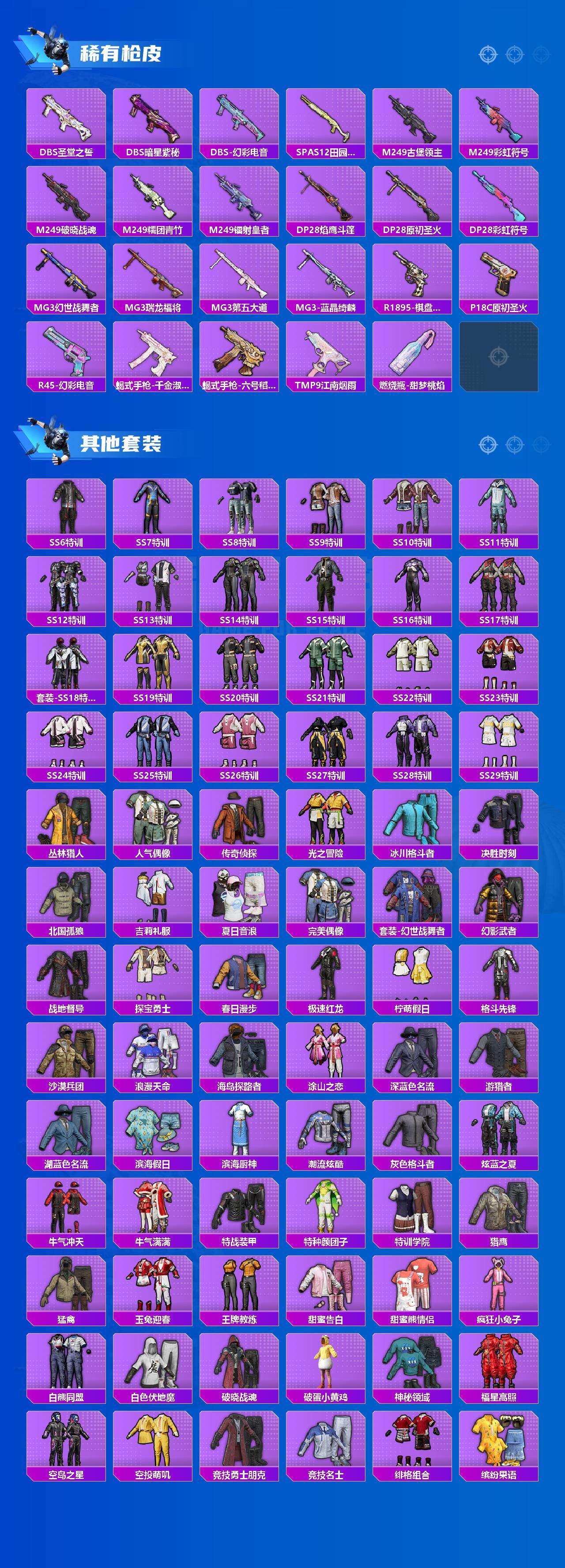 【粉色套装】:粉装-梦幻火箭,粉装-潮汐统领,粉装-炙焰红王,粉装-暗夜鎏金,粉装-未来领航者,粉装-幻影飞狐,角色-智耀战神