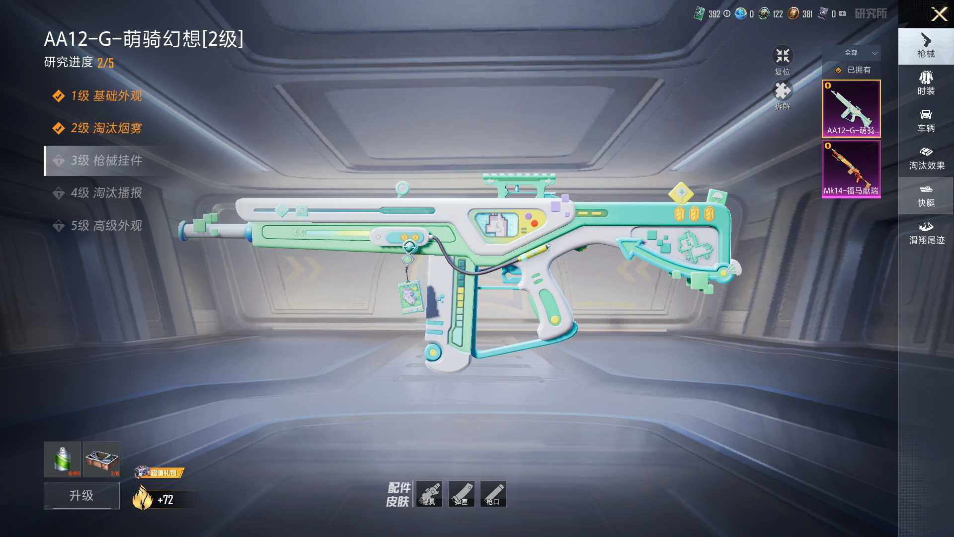 【粉色枪皮等级】:Mk14-福马献瑞(五级),AA12-G-萌骑幻想(二级)