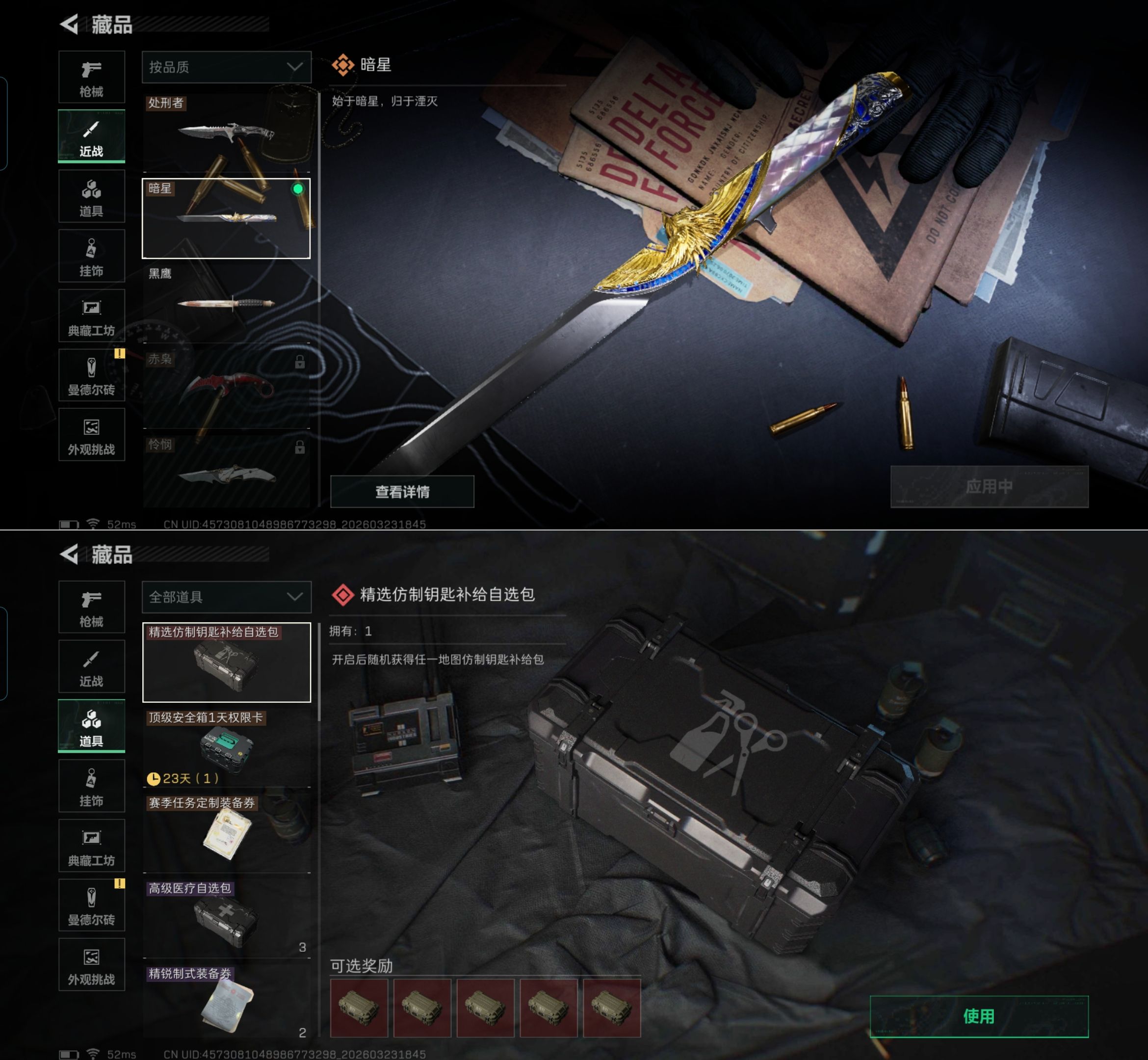 MSJ3985【108M资产 热门双刀皮处刑者 暗星 1干员 16金枪】三端互通-总价值108M-哈夫币20162k-烽火地带等级60-烽火地带【干员皮肤】蛊-不羁人生【近战武器】黑鹰 处刑者 暗星【枪皮】M4A1突击步枪-海色 AKM突击步枪-锦绣 QBZ95-1突击步枪-海浪 QBZ95-1突击步枪-海色 K416突击步枪-几何迷彩 K416突击步枪-高雅黑 K416突击步枪-一帆风顺 K416突击步枪-阿萨拉特攻 M16A4突击步枪-高雅黑 AUG突击步枪-浅蓝涂装 AUG突击步枪-蝮蛇
