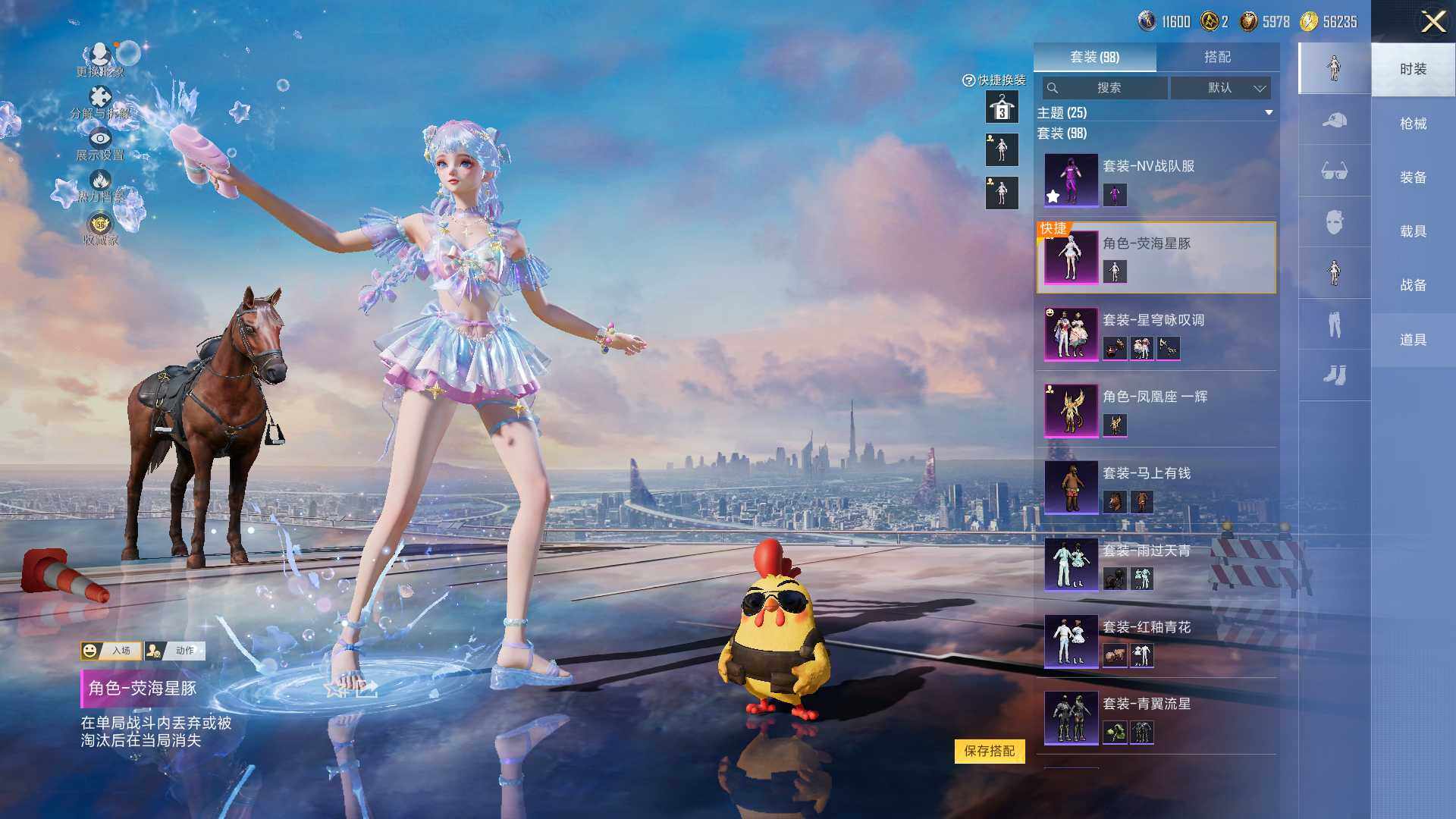 【粉色套装】:角色-凤凰座 一辉,粉装-星穹咏叹调,角色-荧海星豚