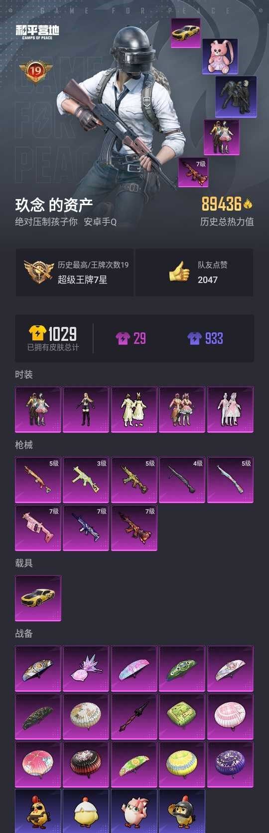 【秒换绑】安卓 手Q-5粉装-8特效枪-1载具-2粉色飞行器-89436热力值-19王牌印记-192套装-312枪皮