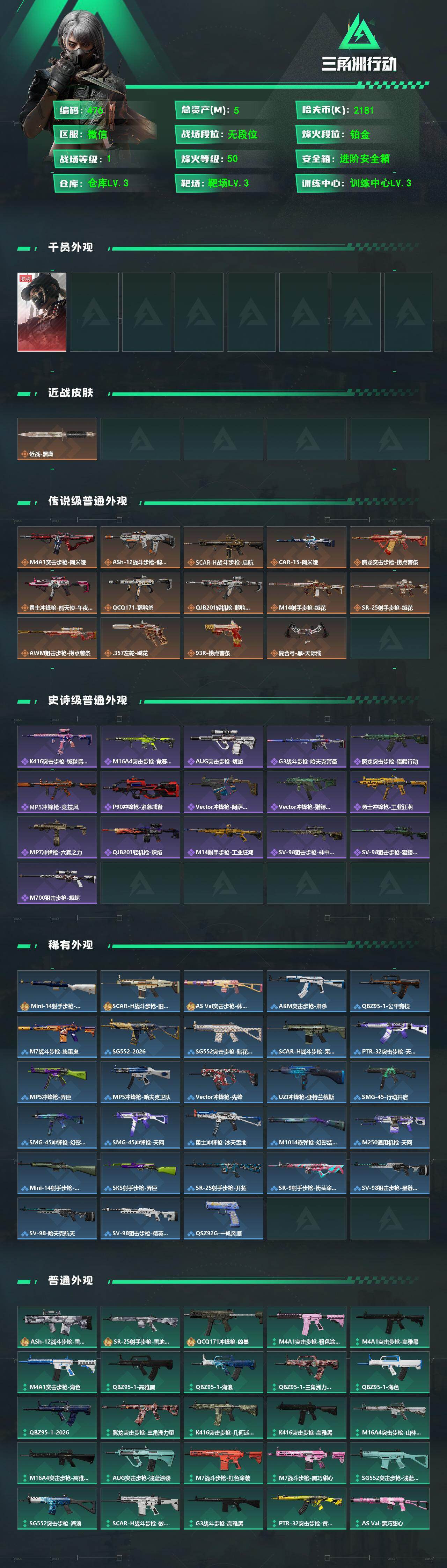 5m总资产-2181k哈夫币-50烽火等级-铂金-1战场等级-无军衔 SM9050