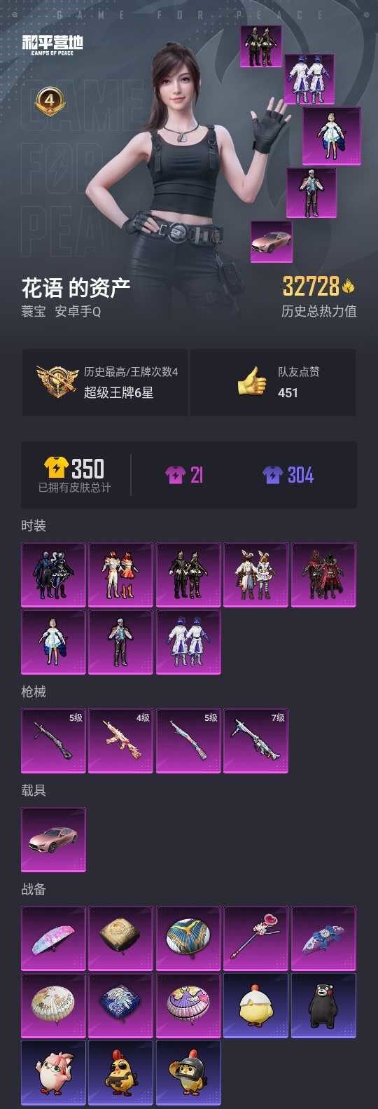 【秒换绑】安卓 手Q-8粉装-4特效枪-1载具-1粉色飞行器-32728热力值-4王牌印记-77套装-88枪皮