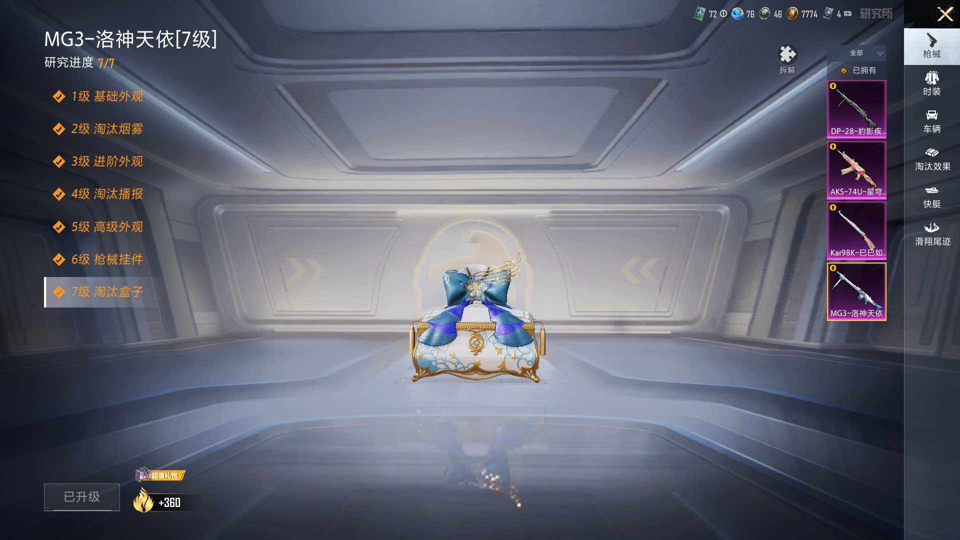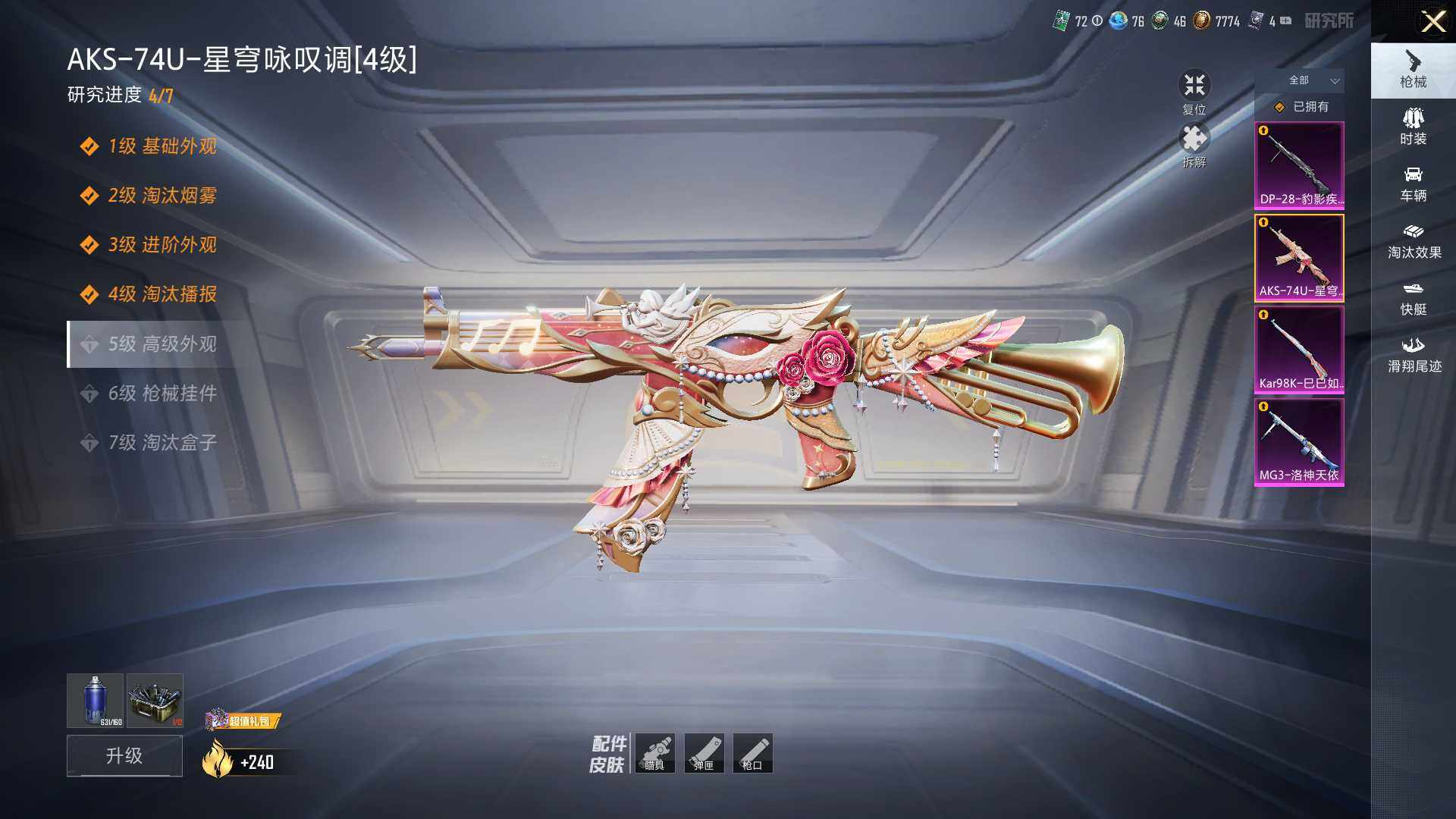 【粉色枪皮等级】:AKS-74U-星穹咏叹调(四级),Kar98K-巳巳如意(五级)