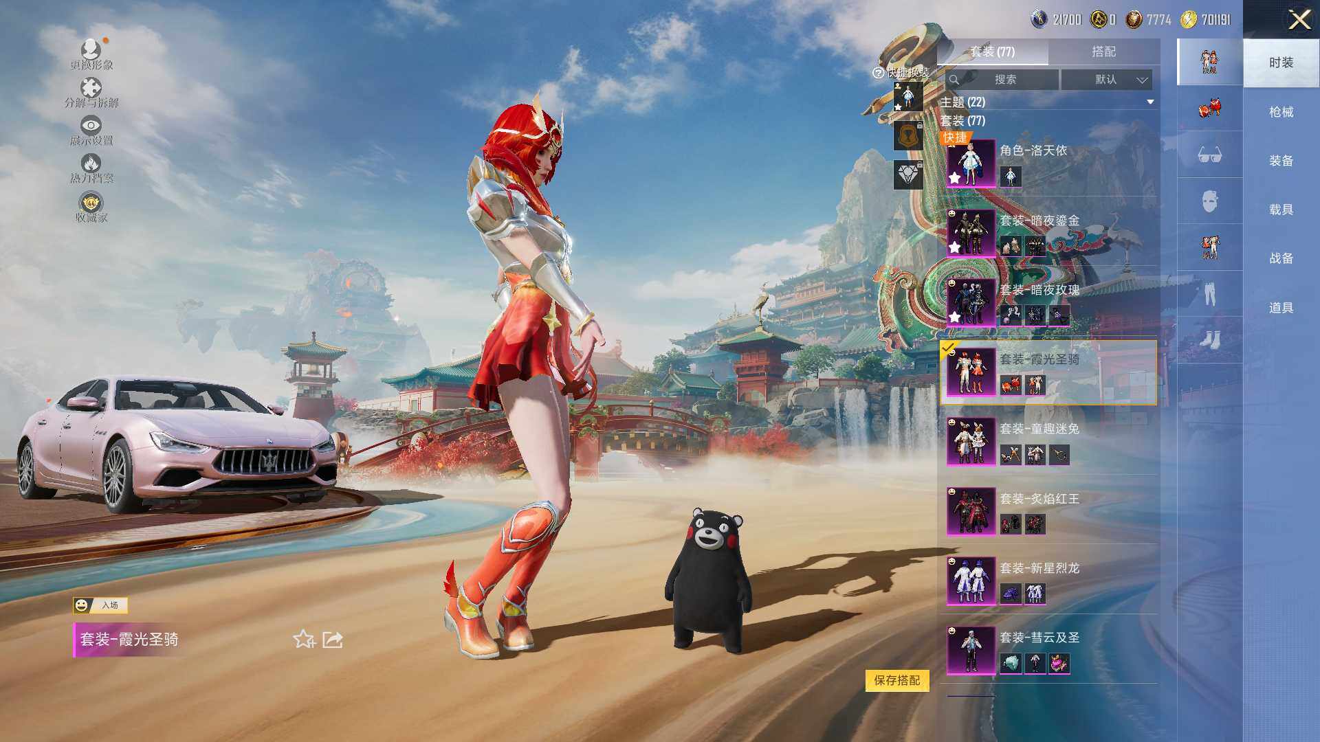 【粉色套装】:粉装-彗云及圣,粉装-新星烈龙,粉装-童趣迷兔,粉装-炙焰红王,粉装-暗夜玫瑰,角色-洛天依,粉装-霞光圣骑,粉装-暗夜鎏金