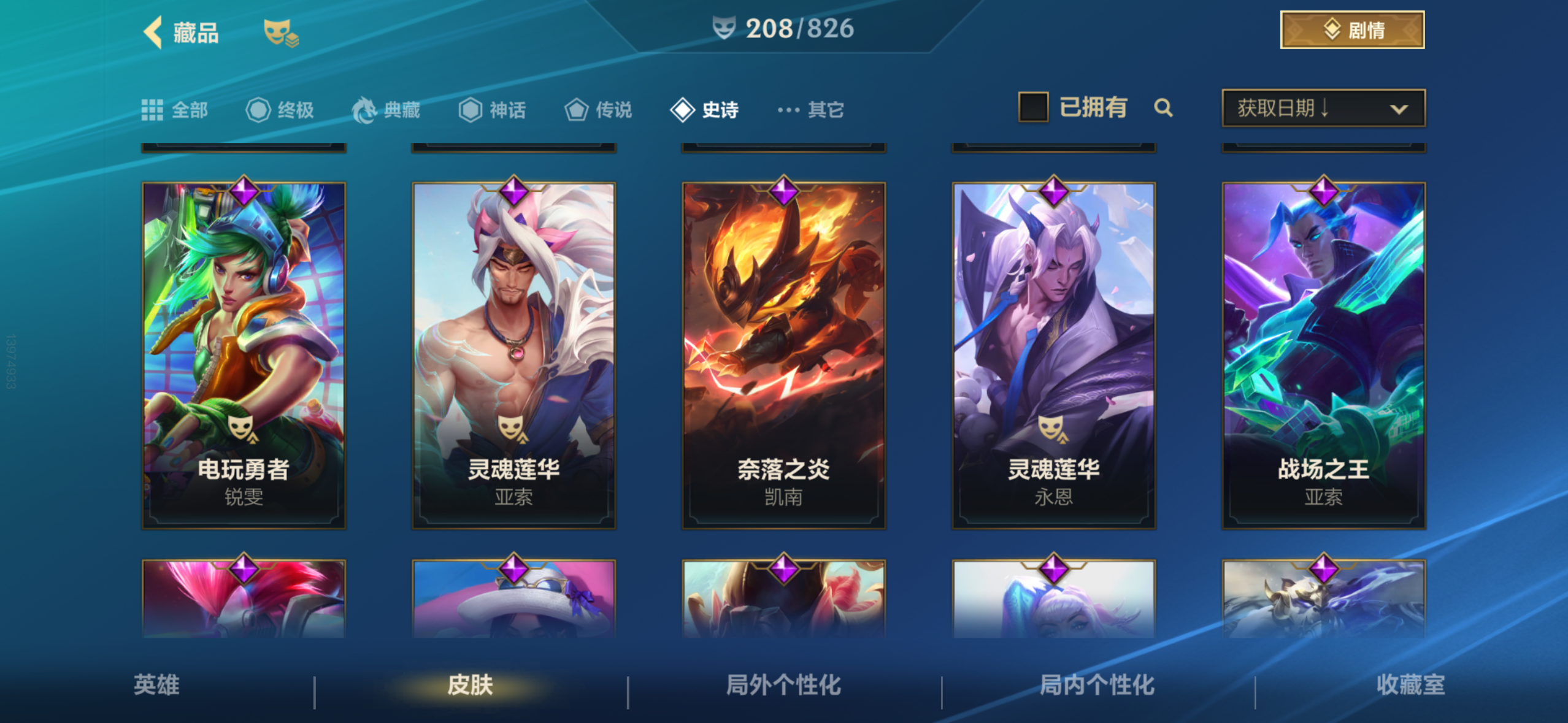 有段位有皮肤每个英雄都带皮肤 热卖皮肤几乎都有 限定比较多 可以随便砍 有缘人合适就出