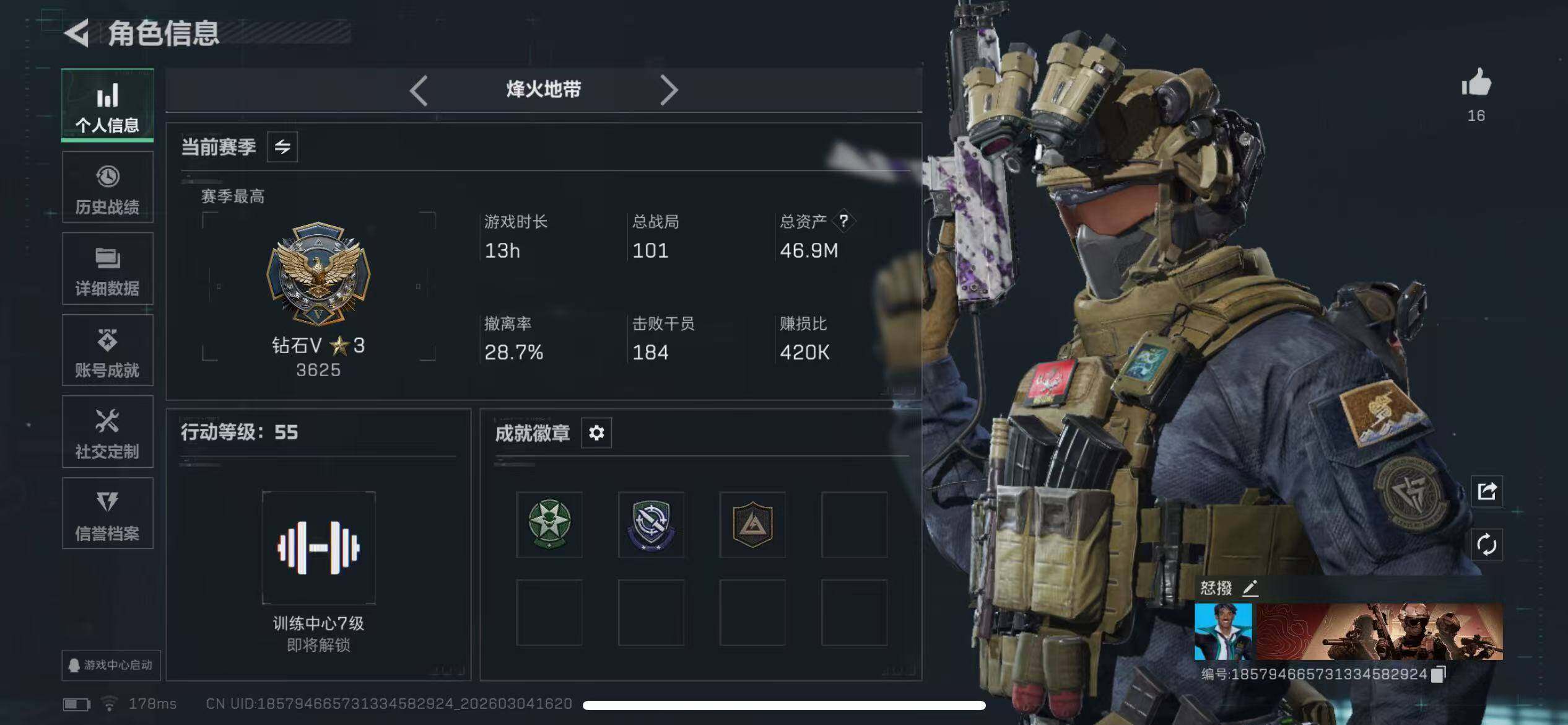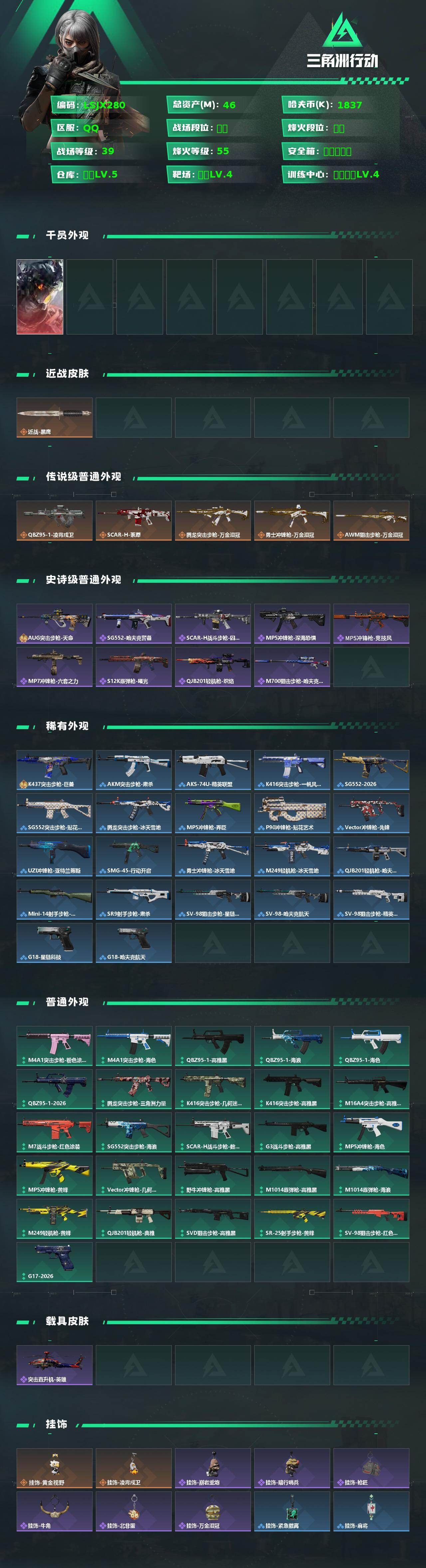 【特价出售/店主推荐】46m总资产-1837k哈伏币-55烽火等级-钻石-39