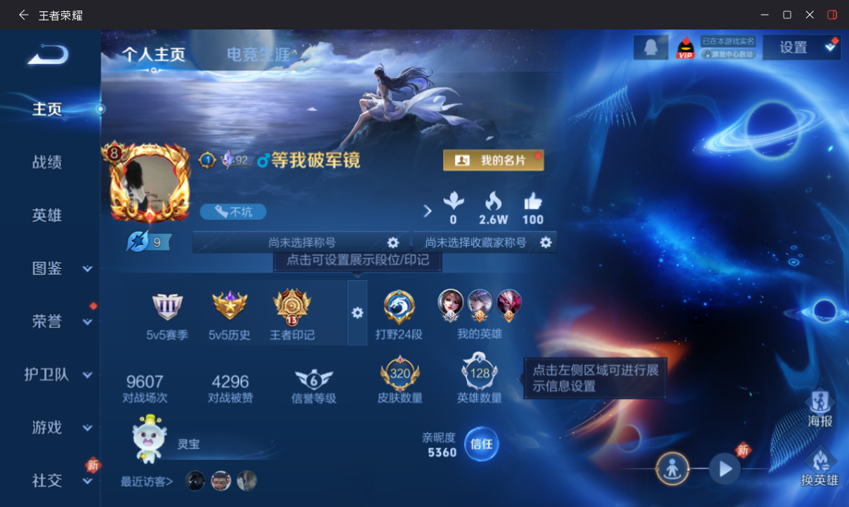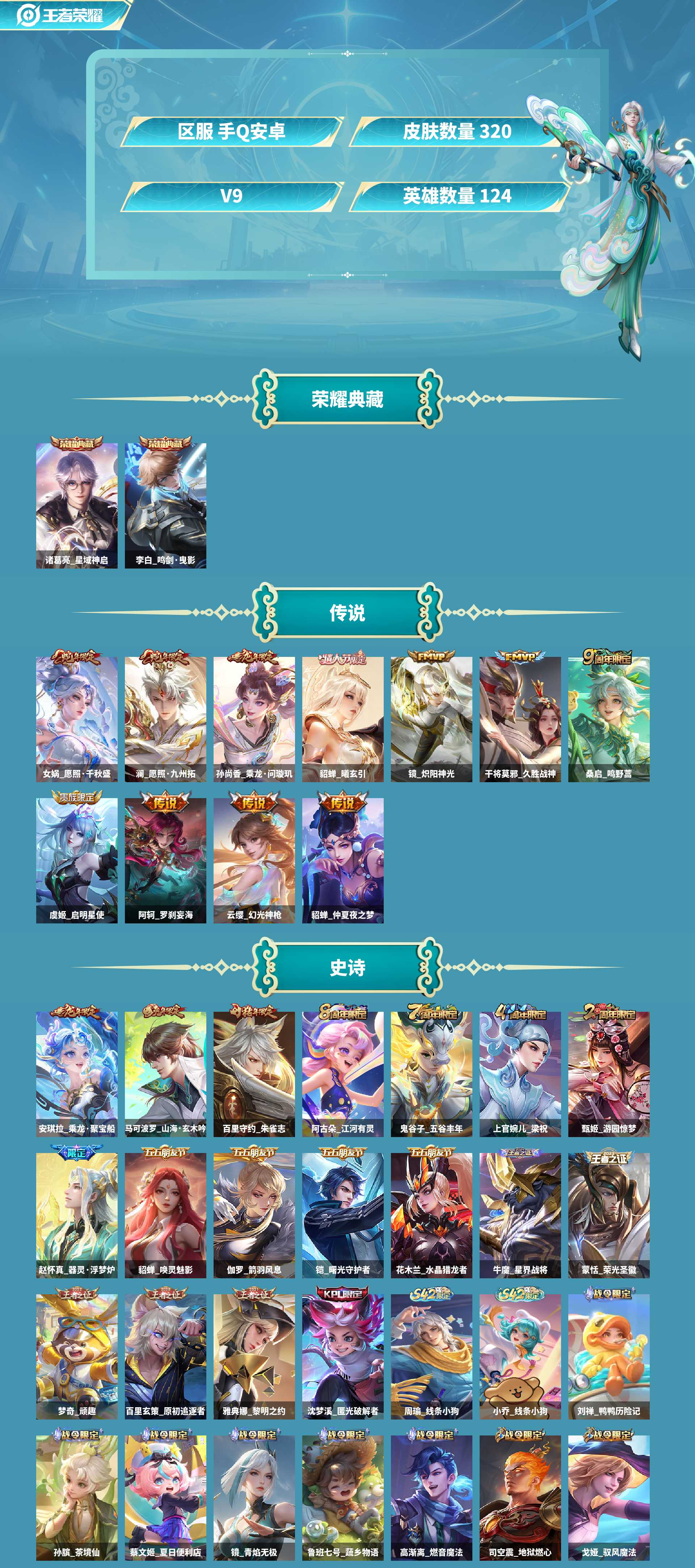 诸葛+李白典藏!皮肤数量320印记总数13V9永恒钻石暂时不