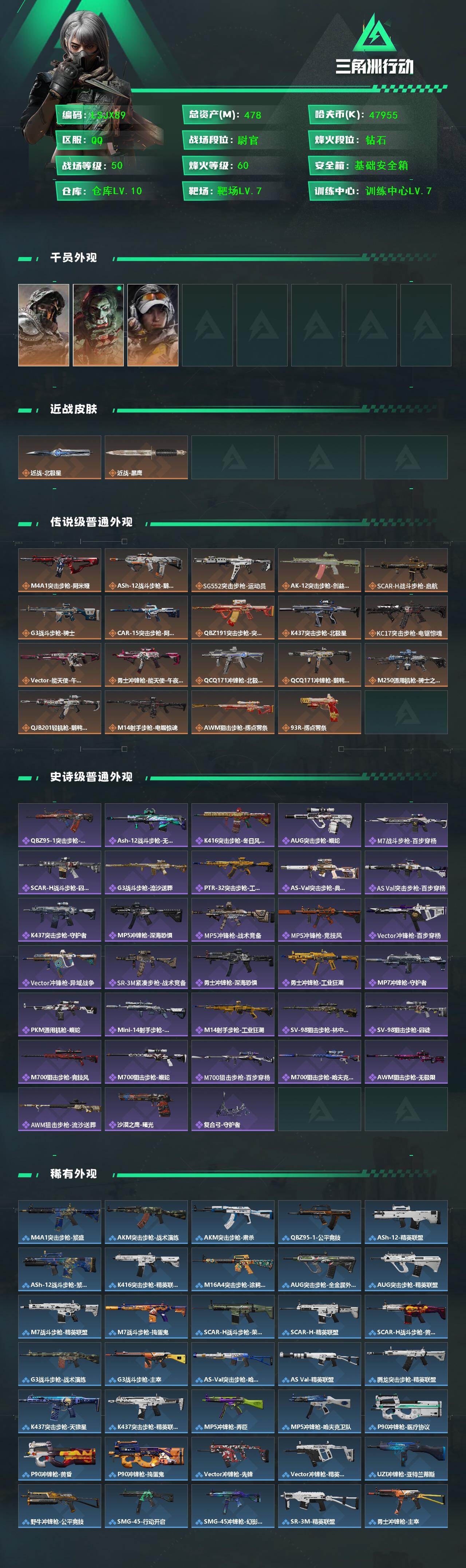 478m总资产-47955k哈伏币-60烽火等级-钻石-50战场等级-尉官
