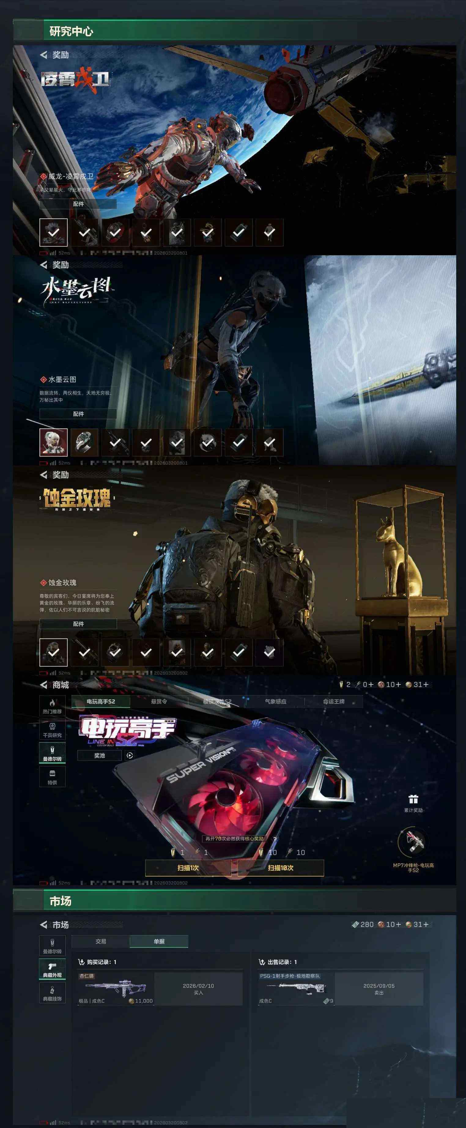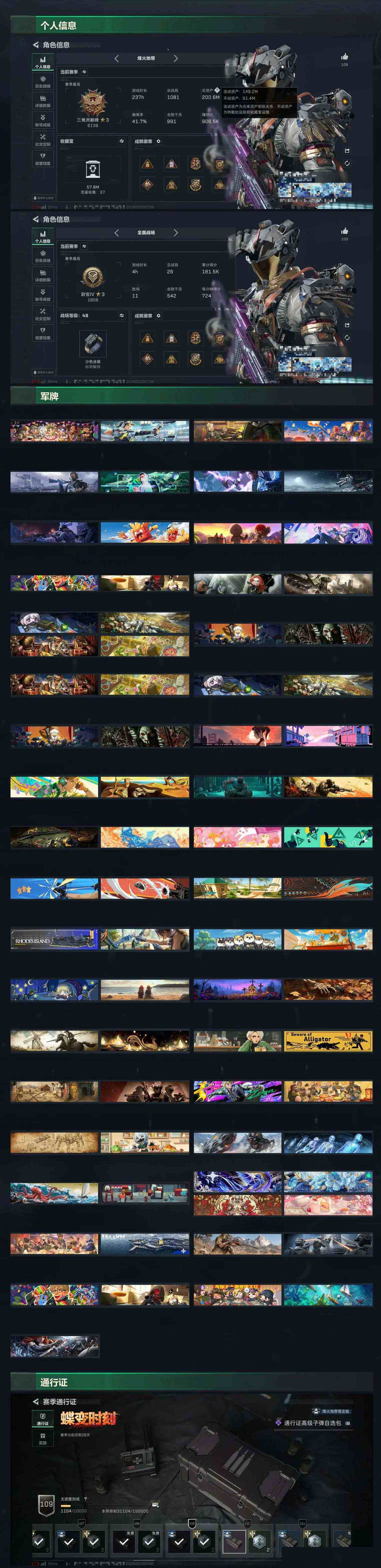 【sjs9686】玩够可回血3红1刀1砖皮200M 烽火地带段位: 三角洲巅峰 全面战场段位: 尉官 总资产: 200000000 哈夫币: 1194000 sjs9686 干员外观: 红狼-蚀金玫瑰,无名-夜鹰(S4),蜂医-送葬人·无题密令(S5),露娜-黑·天际线,深蓝-不破誓约(S6),红狼-电锯惊魂,露娜-金牌射手(S7),乌鲁鲁-荒原猎手,威龙-凌霄戍卫 传说武器皮肤: M4A1突击步枪-蚀金玫瑰,SCAR-H战斗步枪-水墨云图,AK-12突击步枪-夜鹰,725双管霰弹枪-送葬人-无