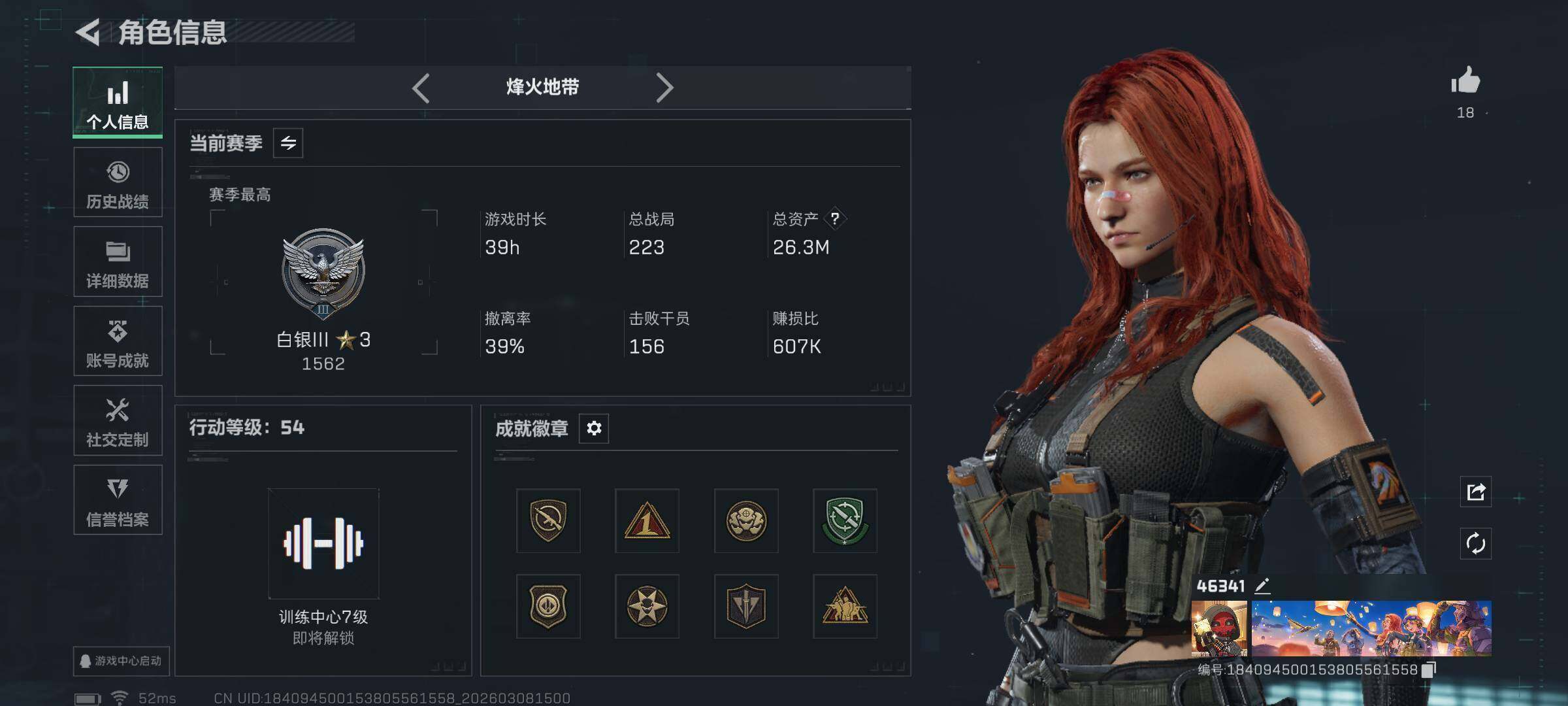26m总资产-1289k哈伏币-54烽火等级-白银-50战场等级-上等兵
