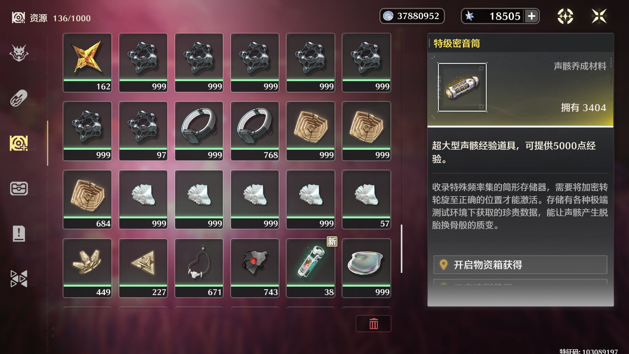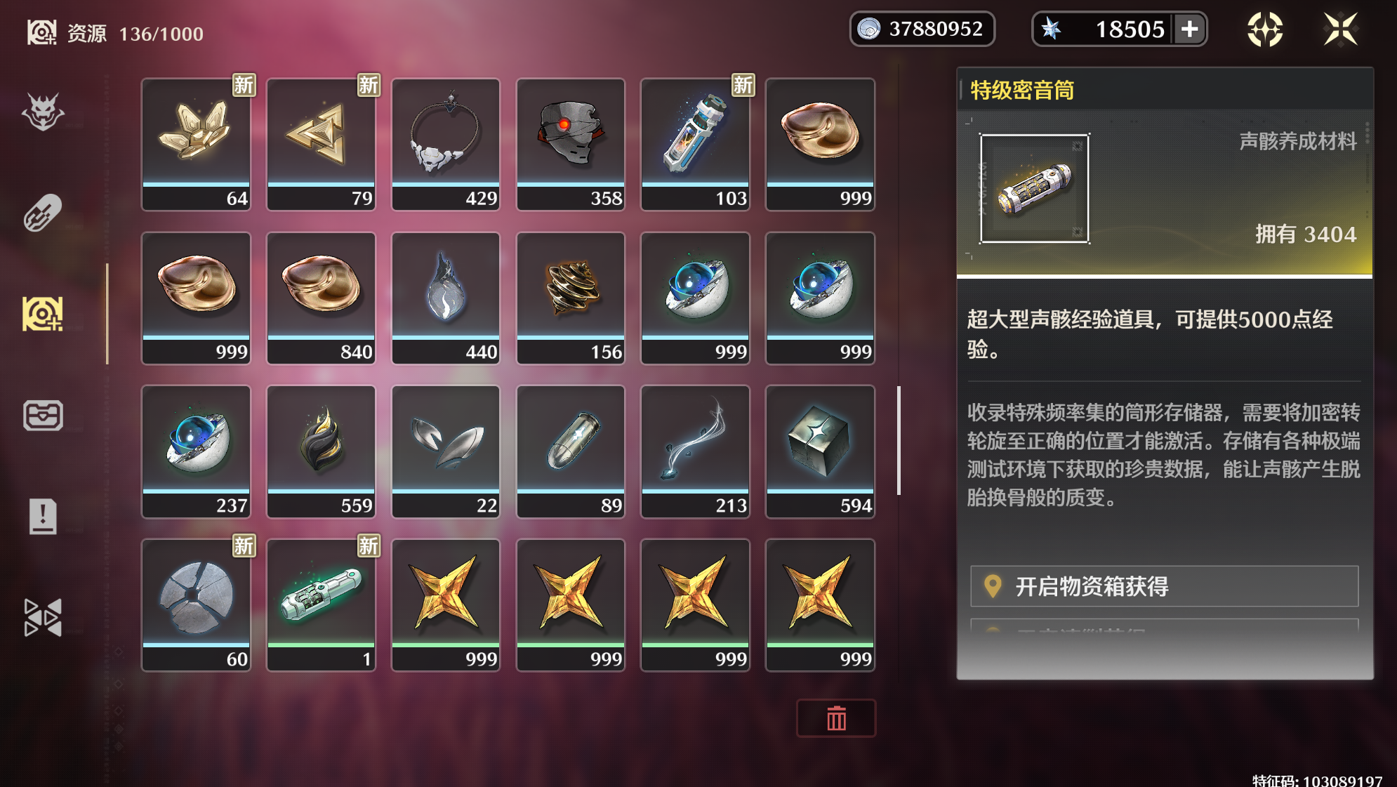 连金+3金欧皇号,月卡143天,1.8W星声剩余,UP角色练度均接近大毕业,资源满满随便练,深渊矩阵随便打,四星全是满命,其余看截图明细