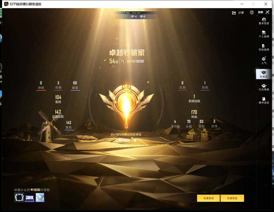 3粉装-4特效枪-1载具-1粉色飞行器-45401热力值-2王牌印记-104套装-158枪皮