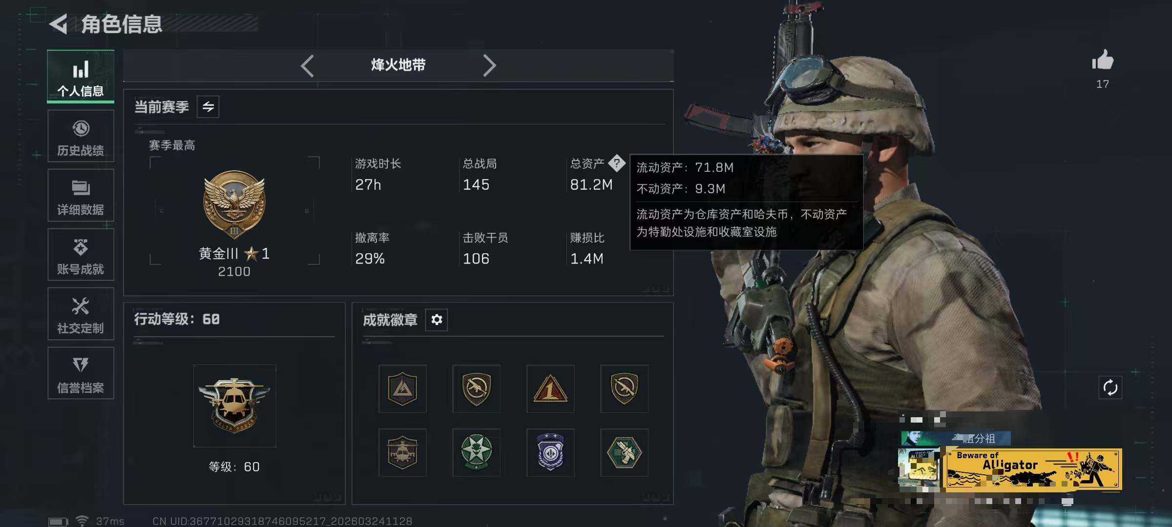 总资产(M):81M/哈夫币(K):3