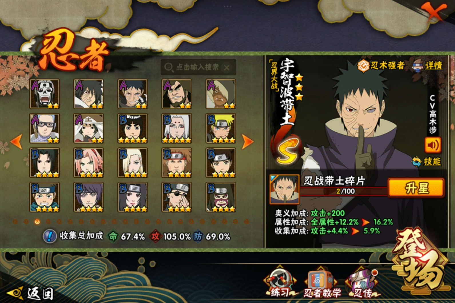 【S级忍者】宇智波带土「忍界大战」(3星),宇智波斑「木叶创立」(3星),迈特凯「死门」(