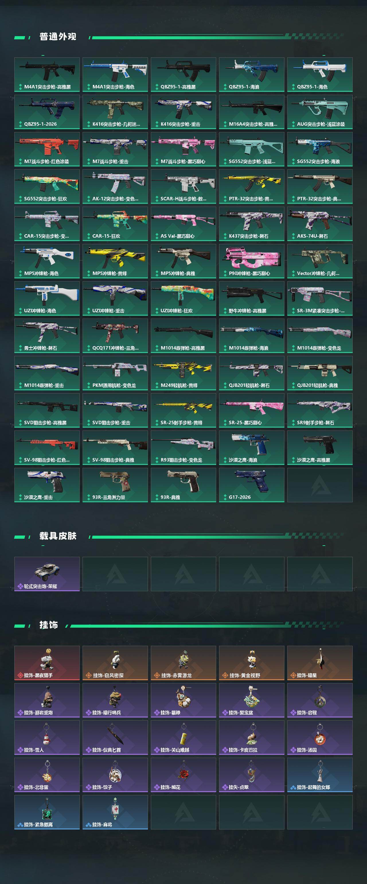 【近战皮肤】:近战-暗星,近战-信条,近战-怜悯,近战-处刑者3级,近战-黑鹰