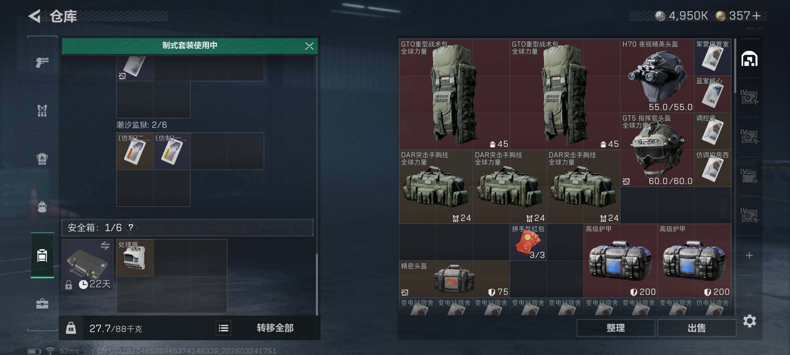 {特价出售}等级:60总资产:55.2M 纯币4950k 刀皮 怜悯 信条 砖皮:电玩S2优品B MP7 特勤处:仓库7,训练7,靶场7部门33232