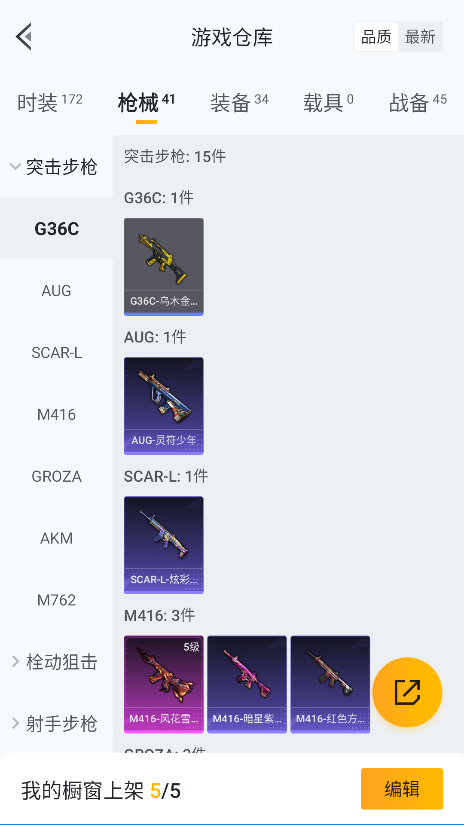 实名: 可修改 时装数: 172 枪械数: 41 战备数: 45 稀有枪皮: