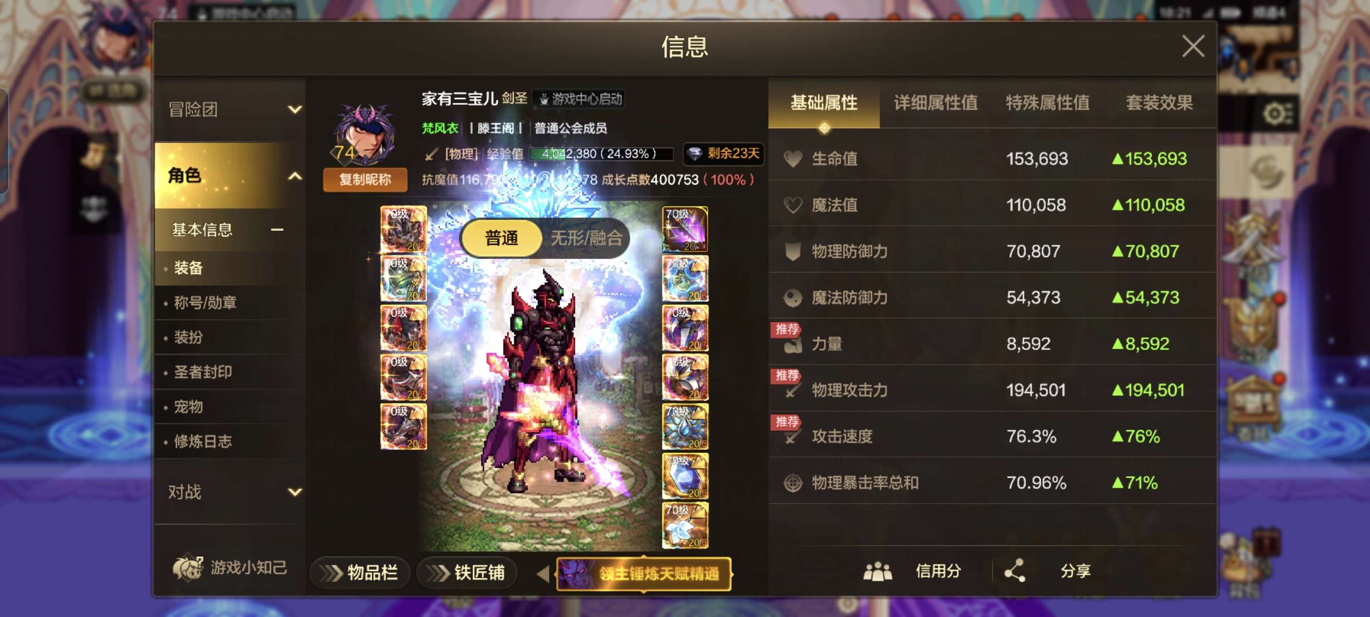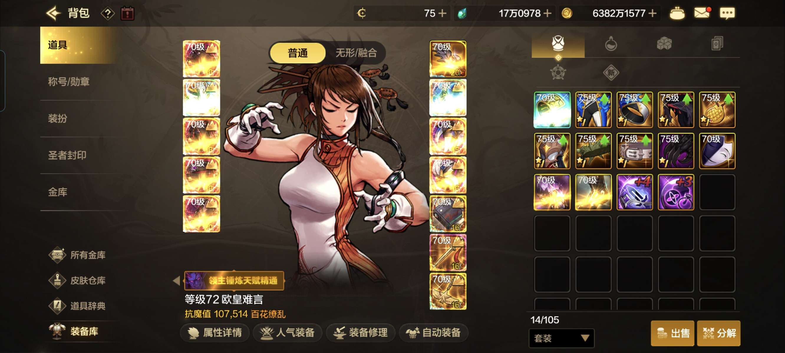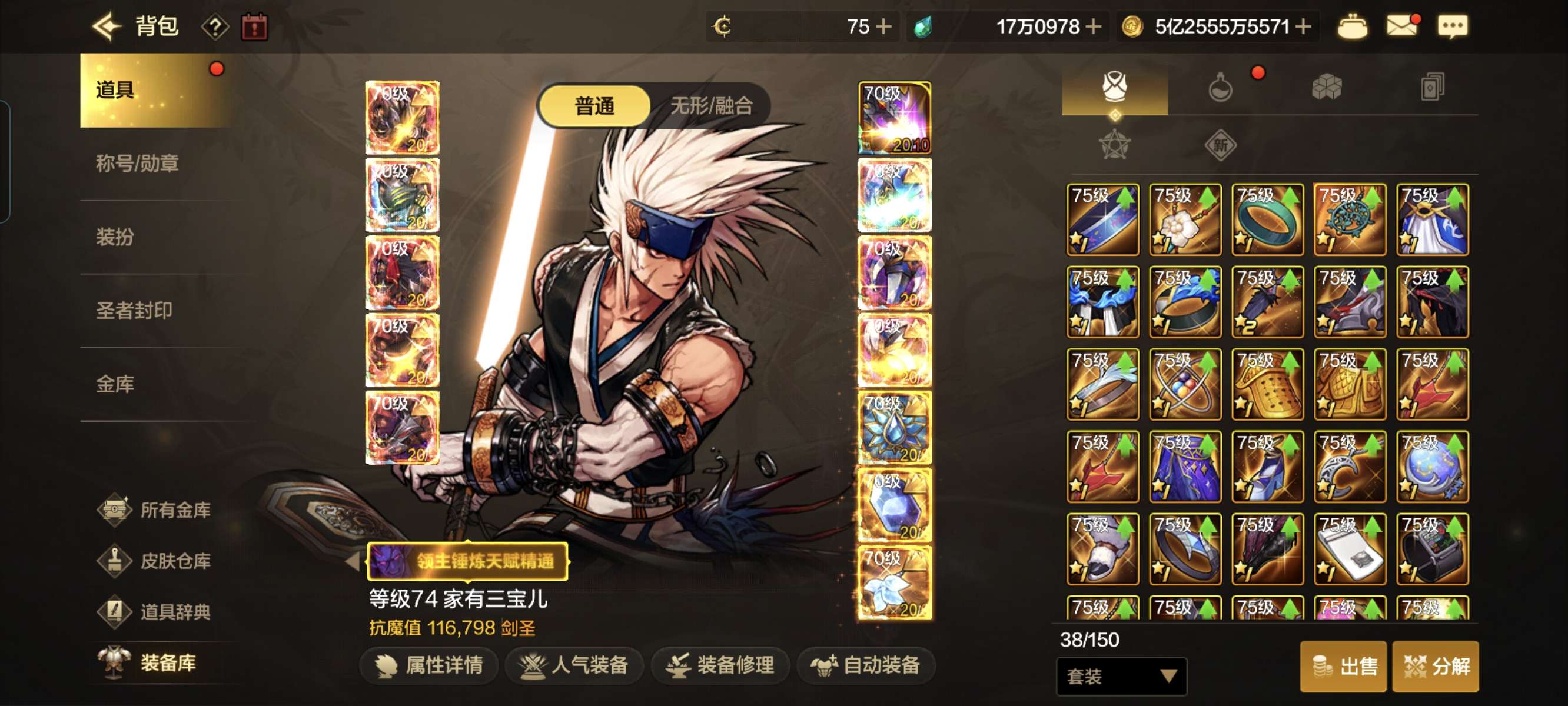 5套天空75装备没穿主号11.6w抗魔