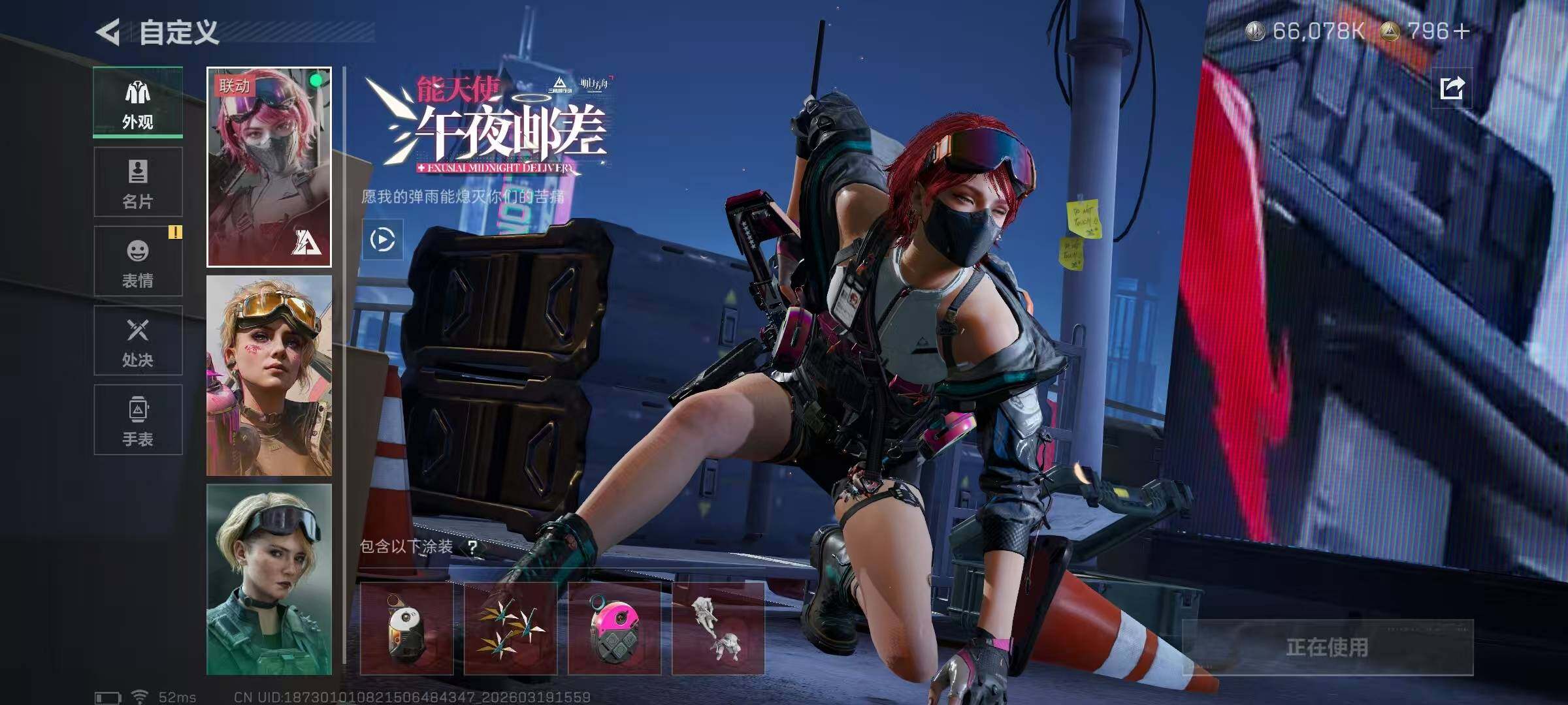 【干员外观】:蛊-能天使午夜邮差,红狼-电锯惊魂,露娜-金牌射手,蛊-不羁人生