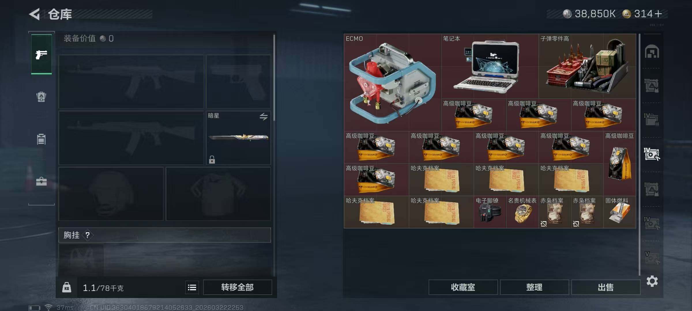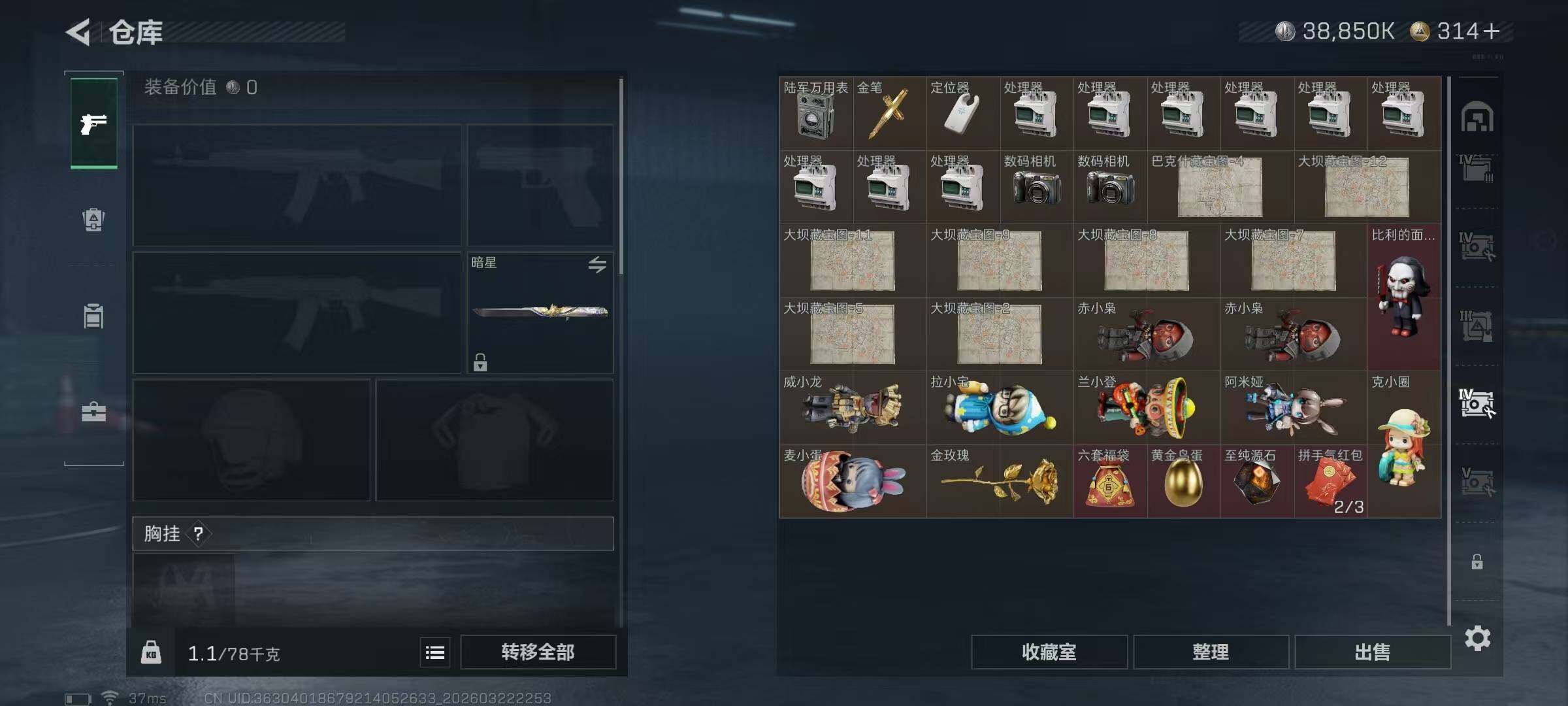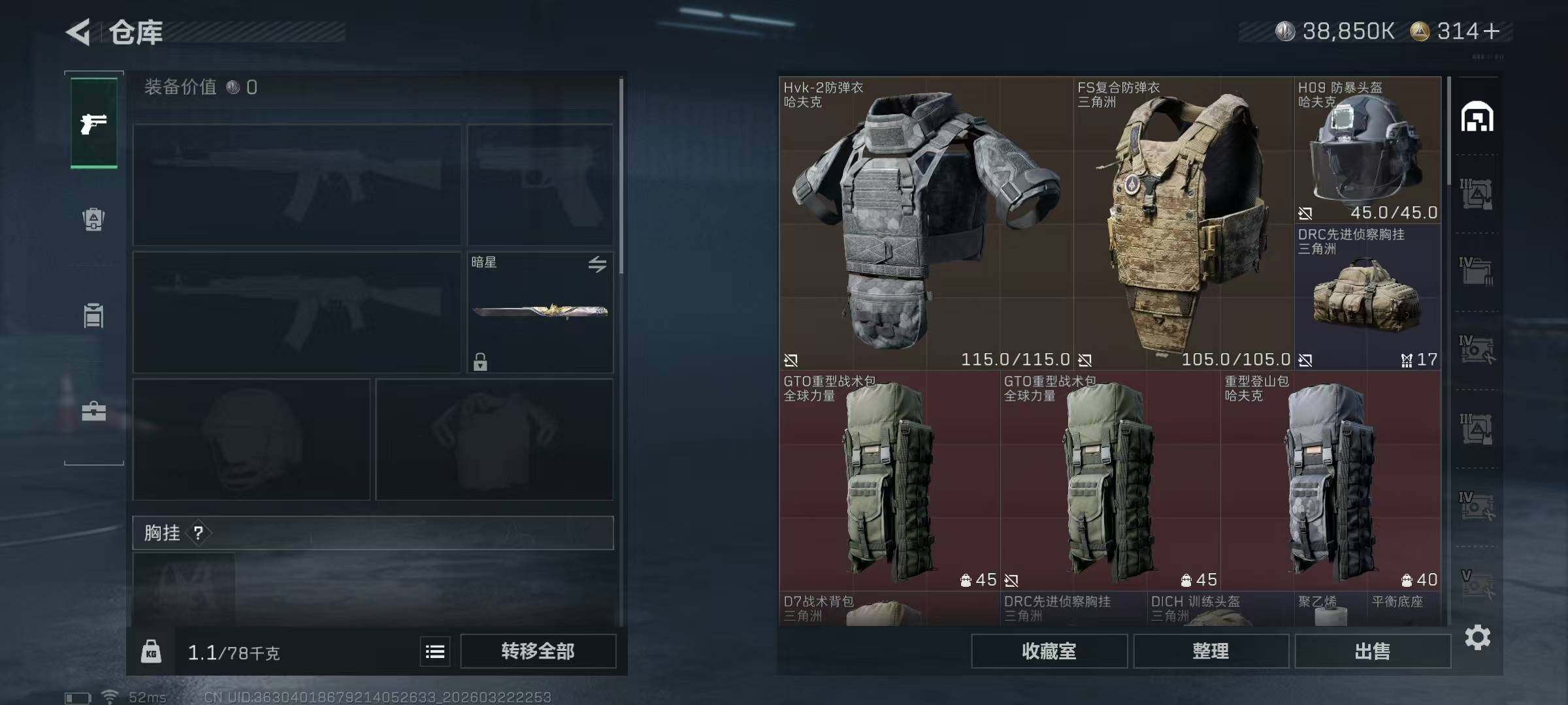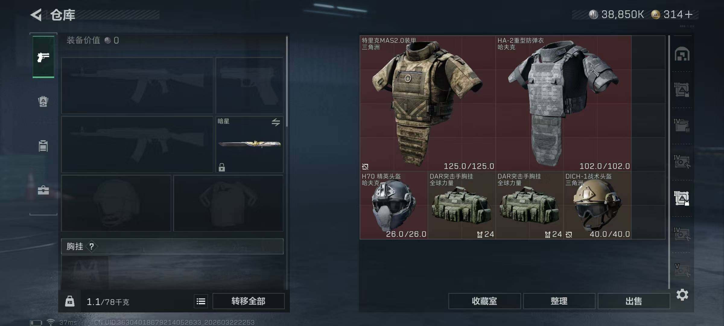273m总资产-38850k哈夫币-60烽火等级-铂金-44战场等级-上等兵