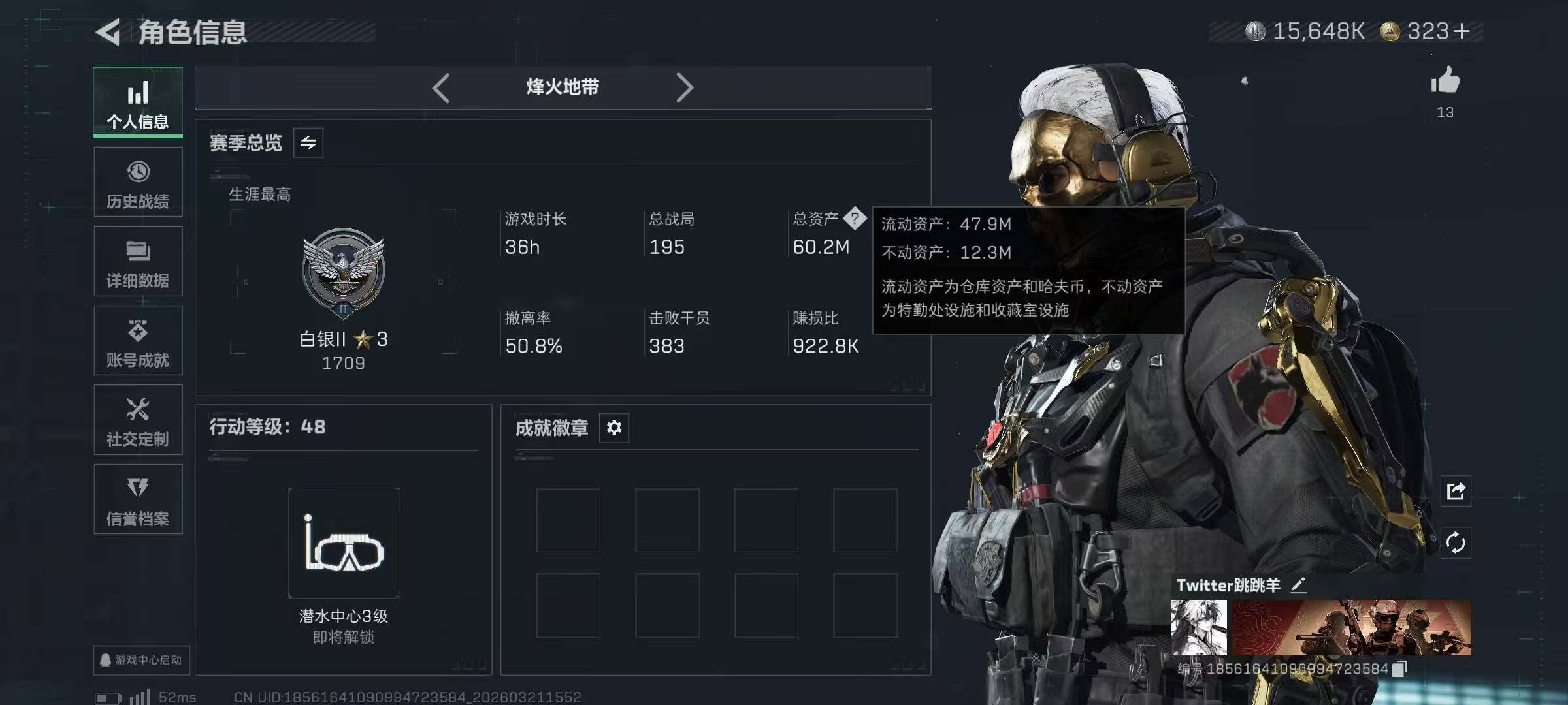 【SJ1498】【玫瑰凌霄带S8进阶2X2有10发AW子弹】48级/总资60M/流资47M/323点卷/红狼(蚀金玫瑰)威龙(凌霄戍卫)/7级仓库5级体力5级负重1级潜水