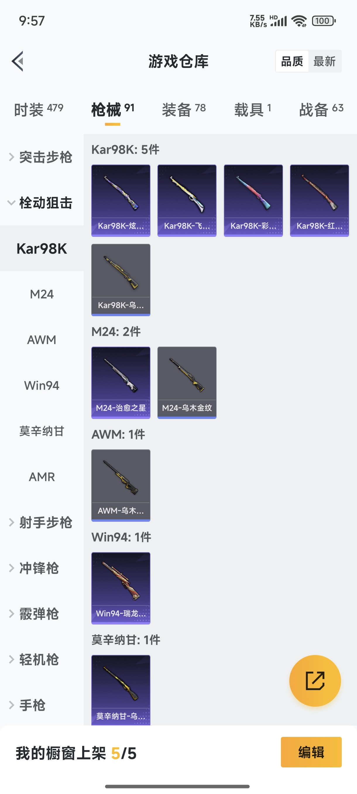 5王牌印记-1粉装-0特效枪-91枪皮-117套装-1载具