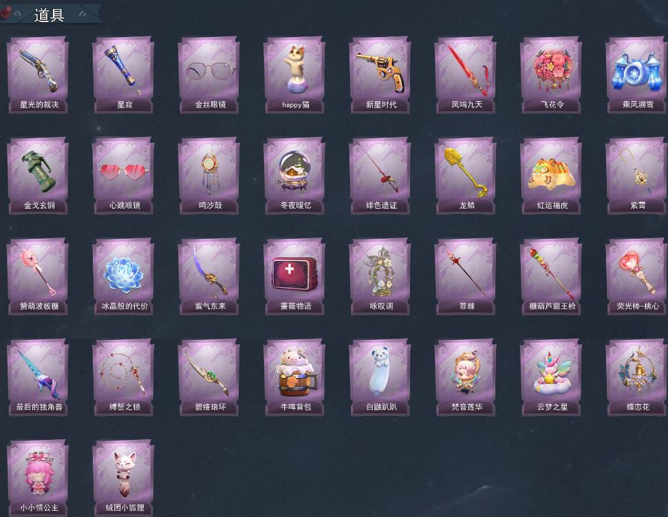 ZR768,金皮:2,紫皮:13,道具皮:34,员工:临云、小黄、爱丽丝、零、阿念、逍遥、薇薇安、巫铃儿、莉莉、艾伦、爱德华、兰、小满,道具皮肤:短管猎枪-星光的裁决、