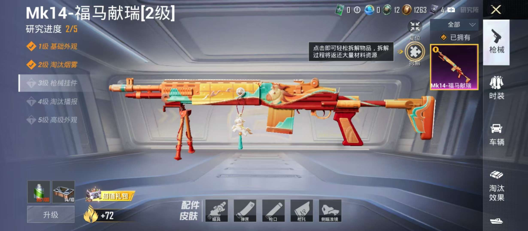 Q-0粉装-1特效枪-0载具-0粉色飞行器-4055热力值-1王牌印记-17套装-18枪皮 【粉色枪皮等级】:Mk14-福马献瑞(二级) 【粉色枪皮】:Mk14-福马献瑞 【粉色降落伞】:辉云木星降落伞 【稀有套装】:套装-马上有钱,套装-迅捷龙虾 【稀有枪皮】:M416-糯团青竹,蜜獾-天降萌叽,汤姆逊-像素花束 【其他套装】:套装-幻影武者,套装-耀粉歌者,套装-街头潮人,