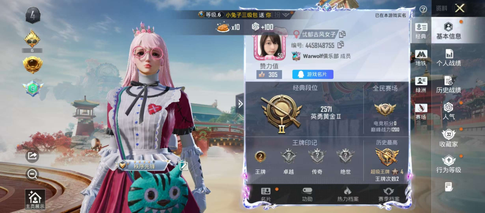 号-蜜桃特工-智耀战神-2王牌印记-彩虹独角兽飞行器,月下星之子飞行器】安卓 手Q-2粉装-1特效枪-0载具-2粉色飞行器-23089热力值-2王牌印记-85套装-69枪皮 【热门品类】:套装-龟仙人,套装-粉红小猪 【粉色套装】:粉装-蜜桃特工,角色-智耀战神 【粉色枪皮等级】:Kar98K-巳巳如意(五级) 【粉色枪皮】:Kar98K-巳巳如意 【粉色飞行器】:彩虹独角兽飞