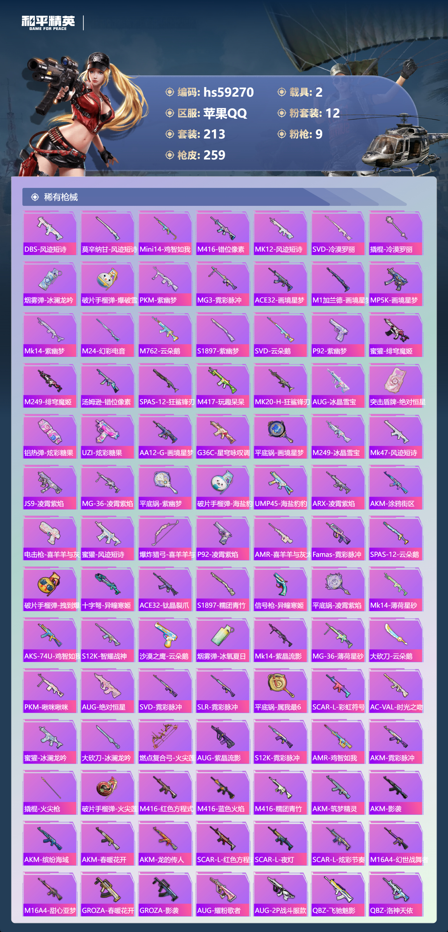 11王牌印记-1红装-12粉装-9特效枪-2载具