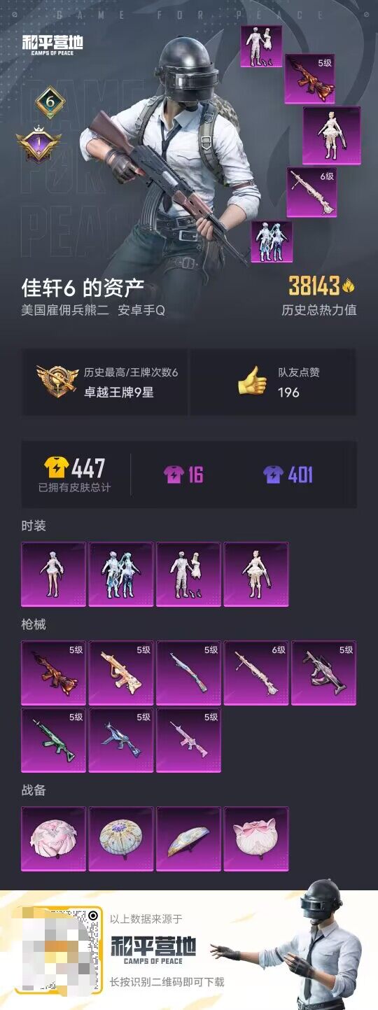 【商品标题】:W5655 可立即换绑无需挂单养号 安卓 手Q-4粉装-8特效枪-0载具-38143热力值-6印记-81套装-125枪皮
