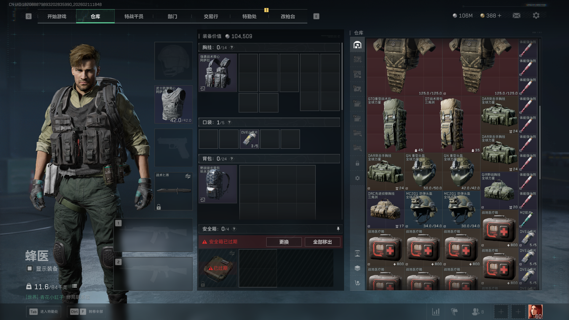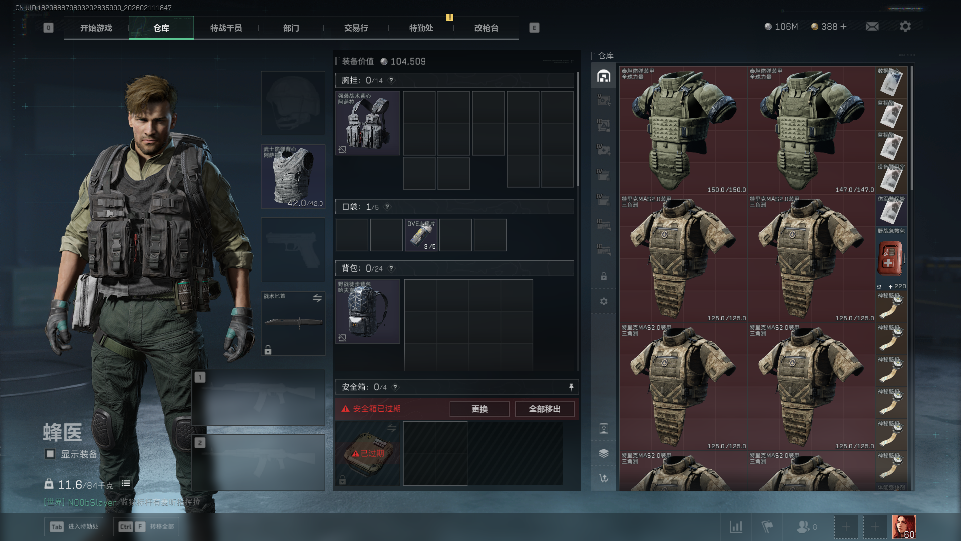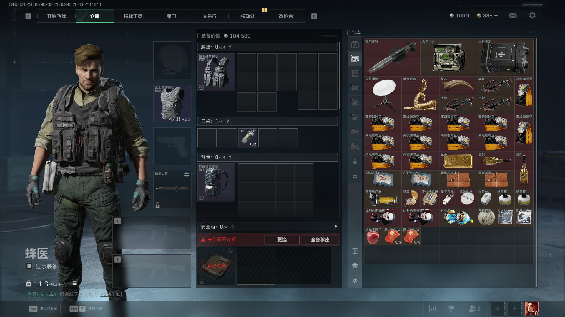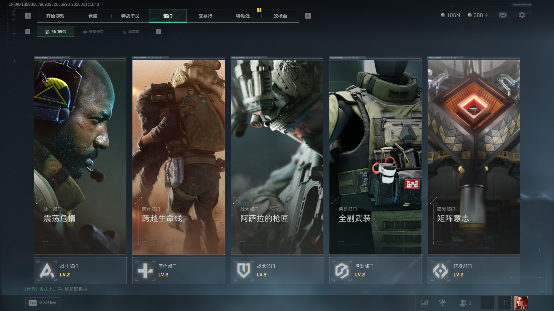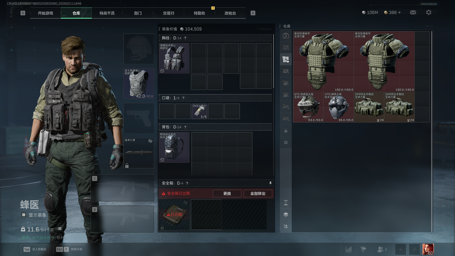 总资产:282M,哈夫币:10600W,三角币&卷合计:388,武器皮肤:12