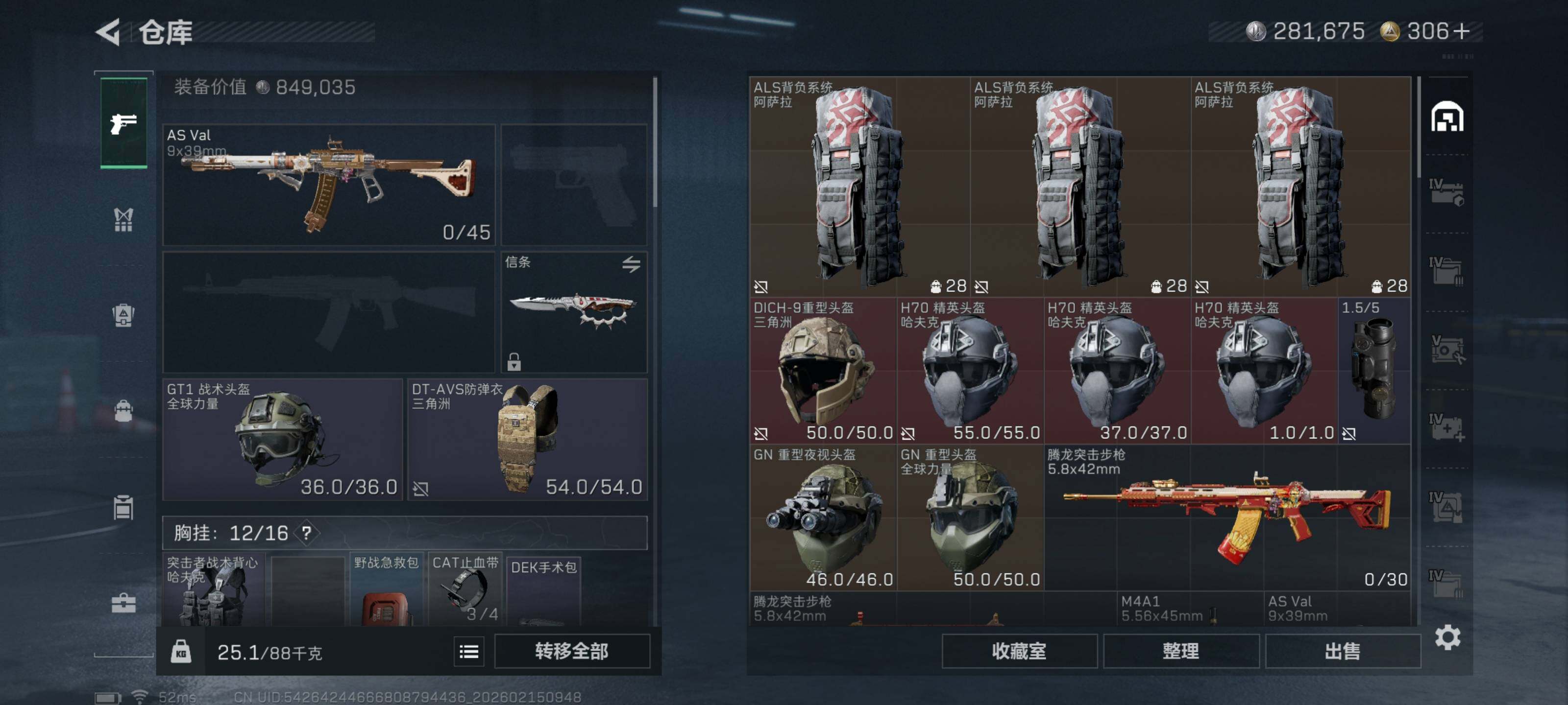 总资产(M):210M/哈夫币(K):281K/哈夫币(K):281K/传说枪