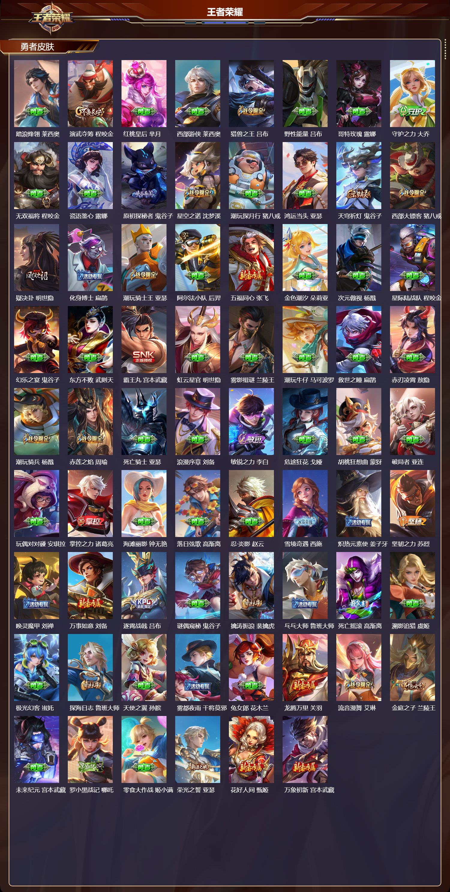 苹果QQ/至尊星耀/501皮肤/126英雄/5典藏/0珍品无双/3无双/5珍品传