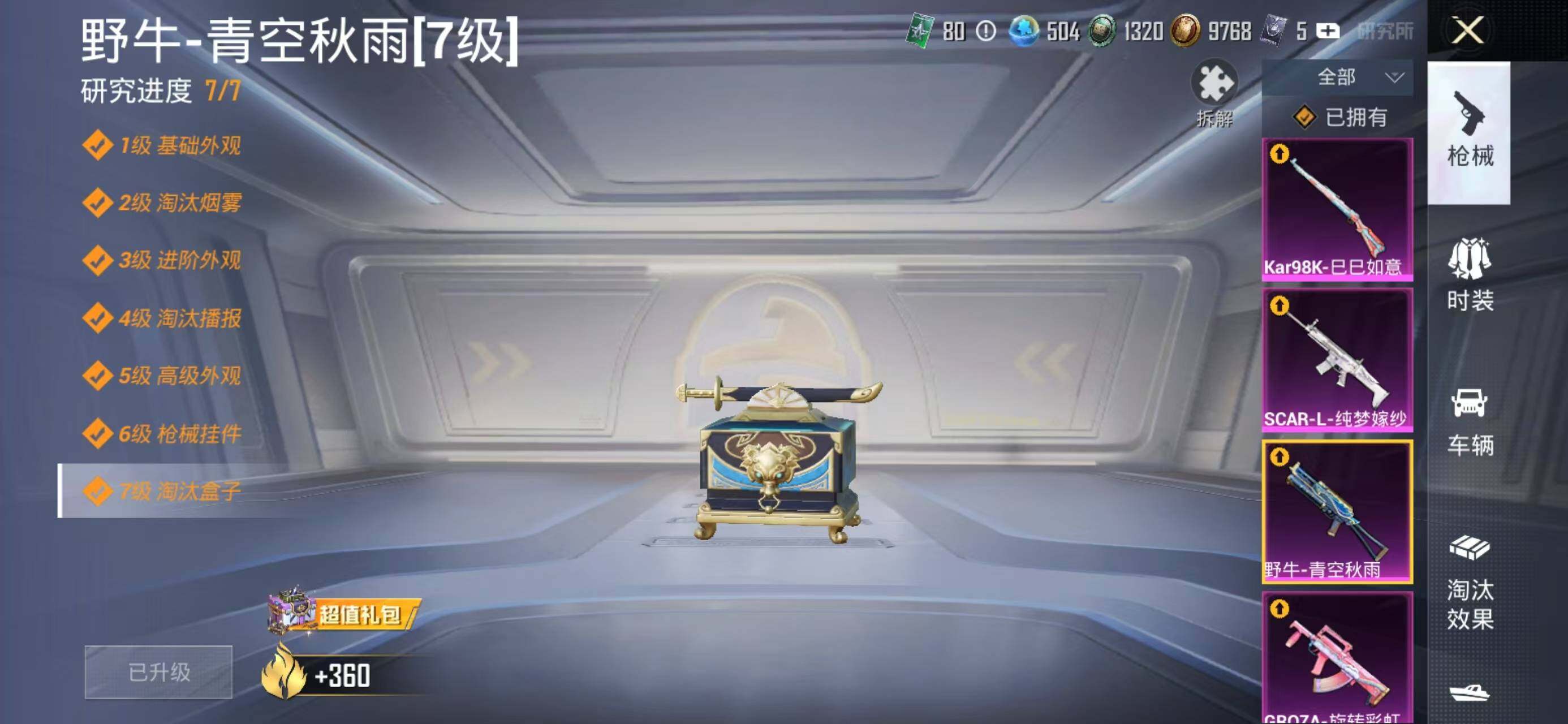 安卓 手Q-8粉装-9特效枪-0载具-3粉色飞行器-71285热力值-11王牌印记-169套装-222枪皮