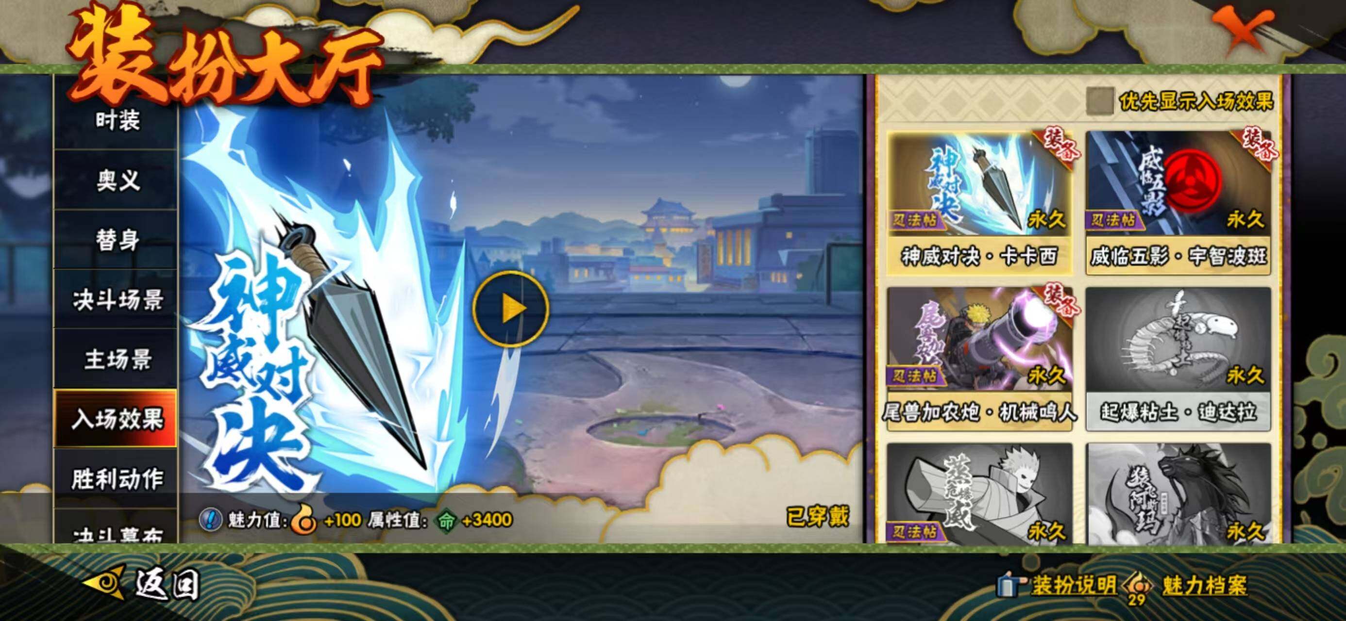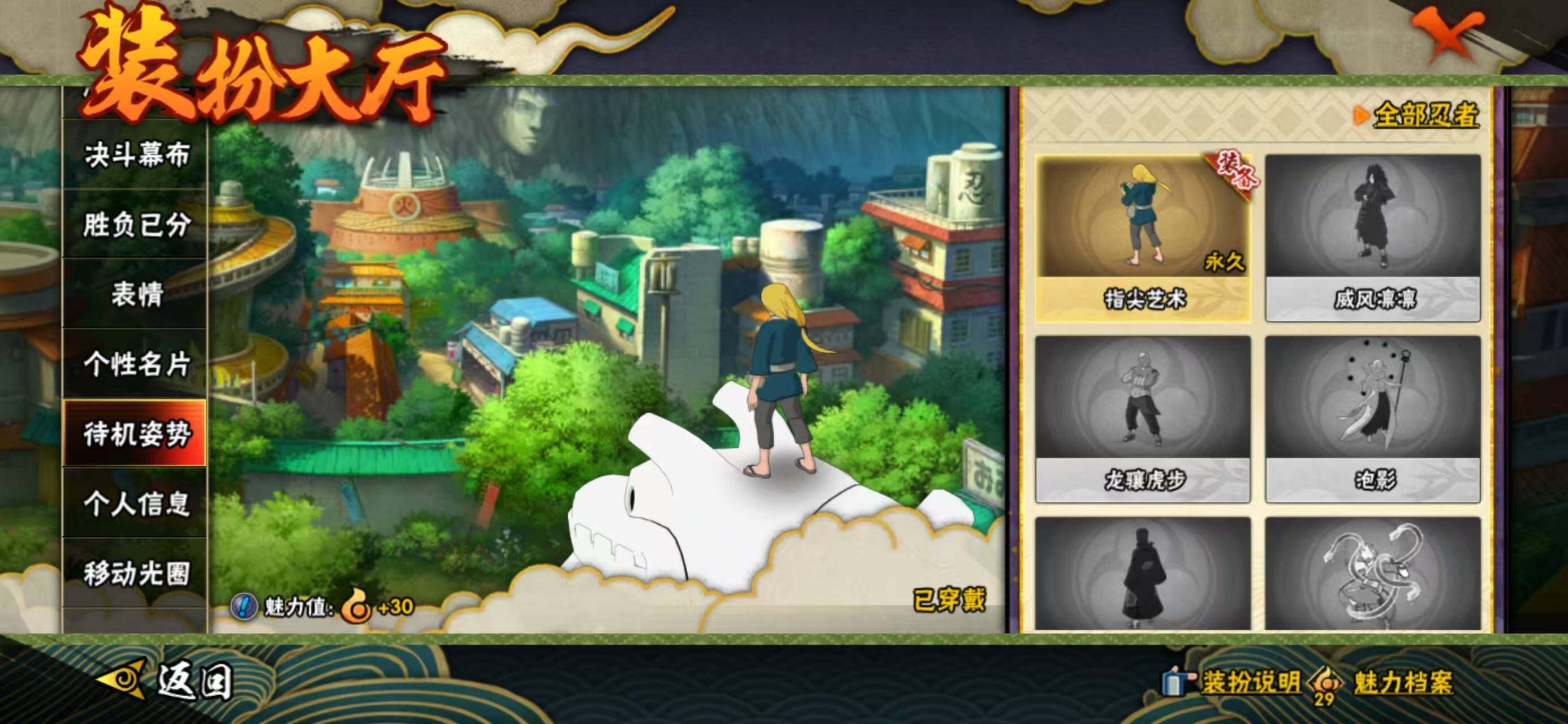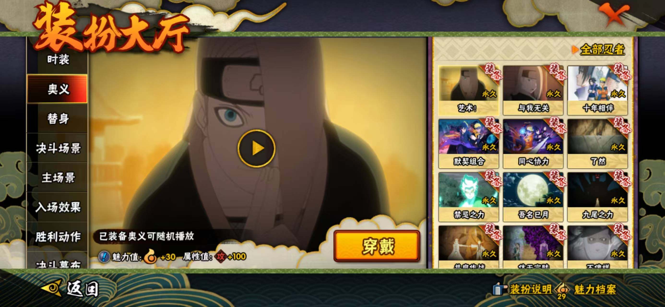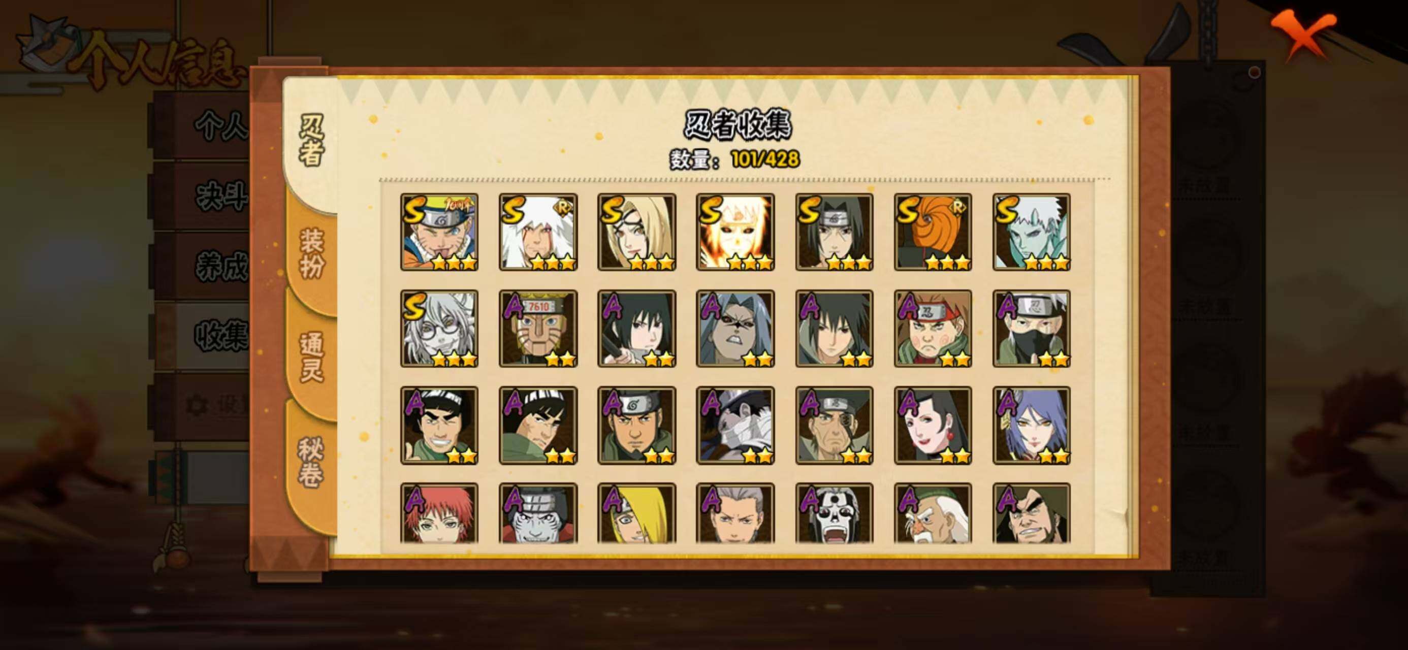 【S级忍者】:宇智波鼬「须佐能乎」(3星),自来也「舞之豪杰」(3星),纲手「百豪」(3星),药师兜「仙人模式」(3星),波风水门「九喇嘛连结」(3星),宇智波斑「五影会谈」(3星),漩涡鸣人·宇智波佐助(3星),宇智波带土「十尾人柱力」(3星)
