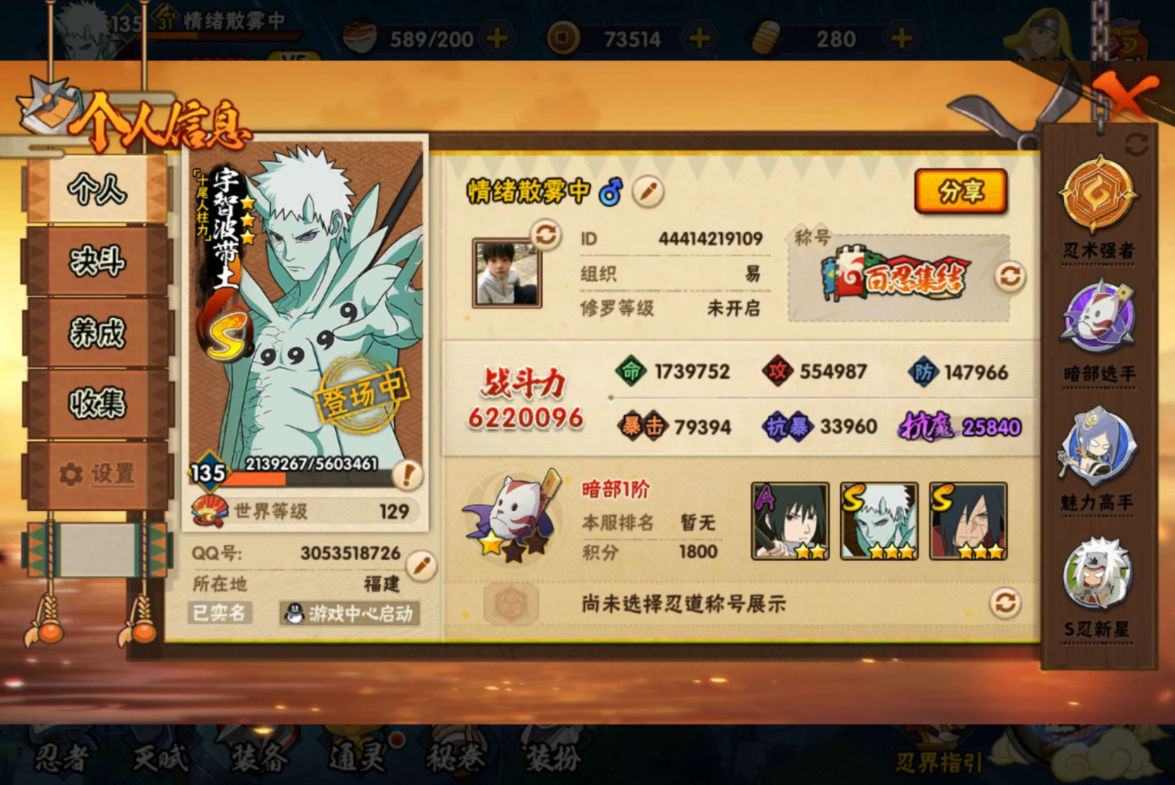 安卓qq-新手入坑账号-嘎嘎香-600多w战-S忍者数:8