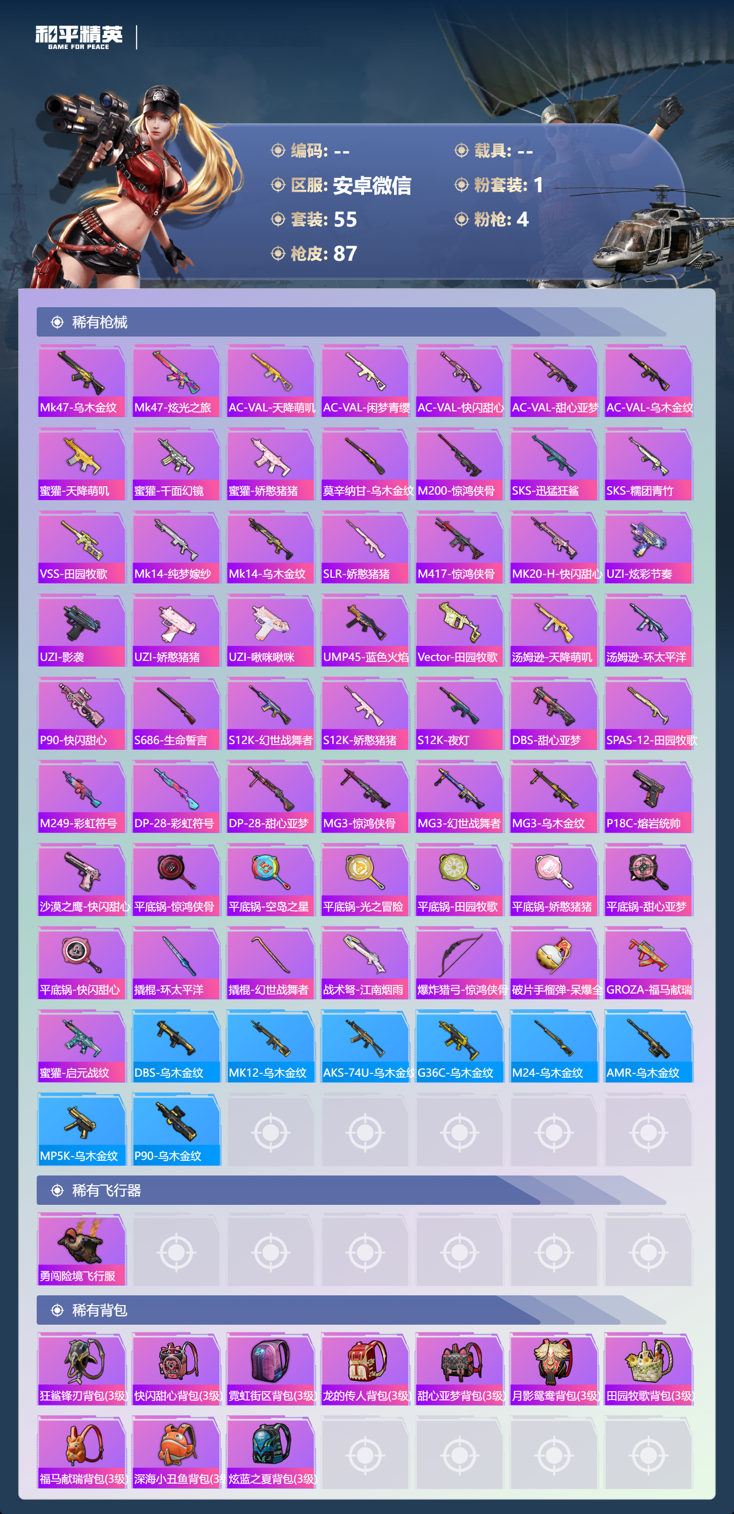 安卓微信-0王牌印记-1粉装-4特效枪-24804热力值-55套