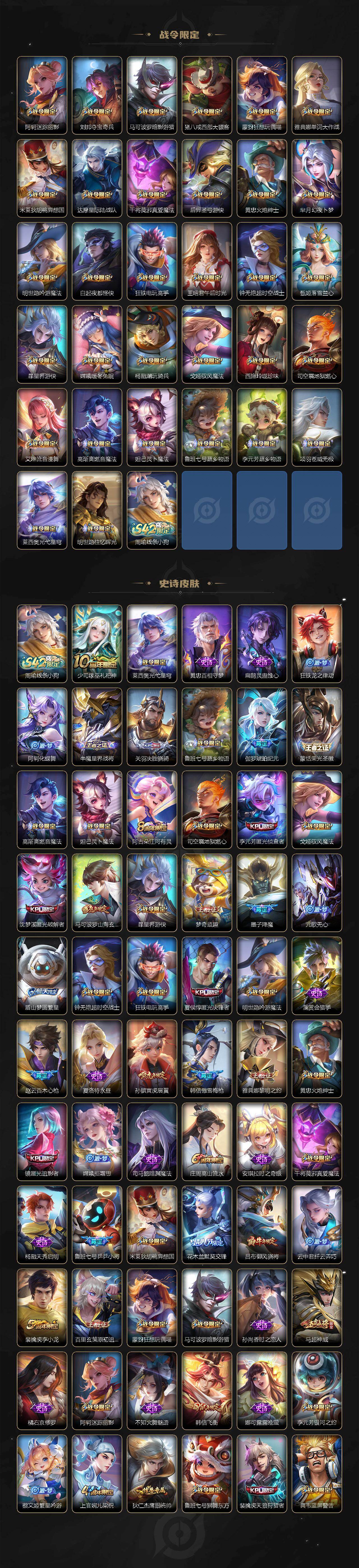 贵族9/皮肤381/典藏2/传说19/史诗112/英雄127/狂铁全皮/盾山全皮
