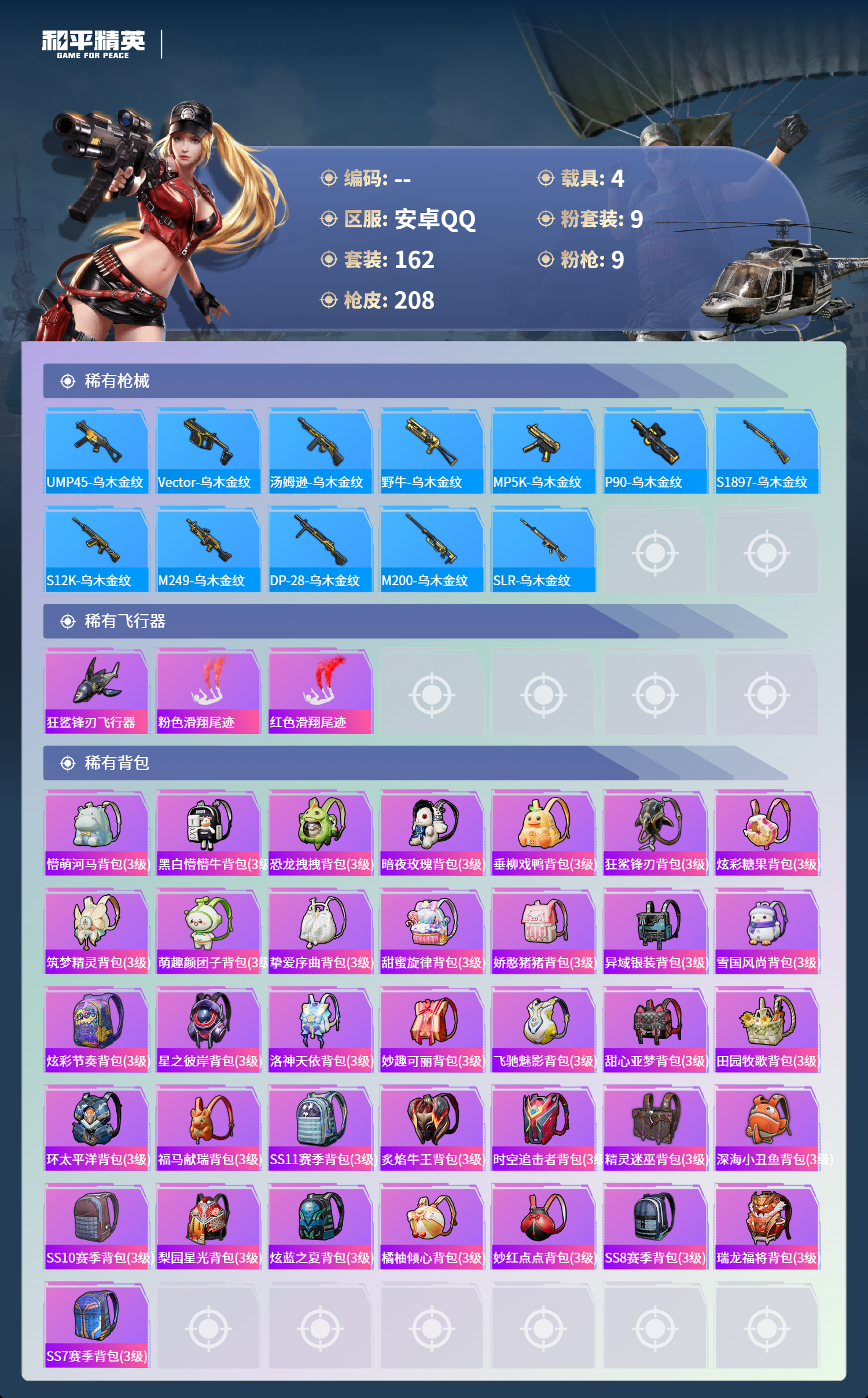 10王牌印记-9粉装-9特效枪-4载具-72739热力值