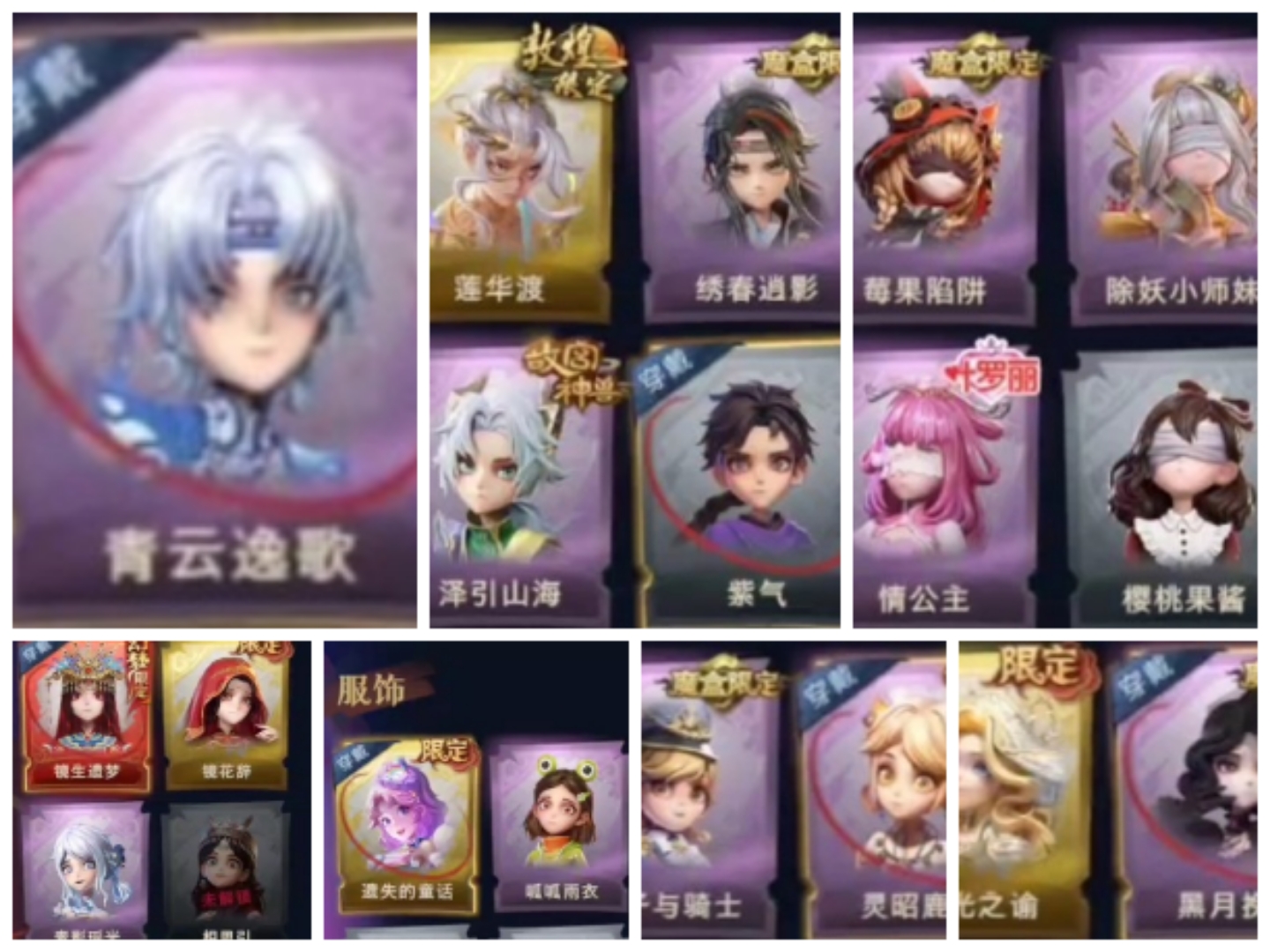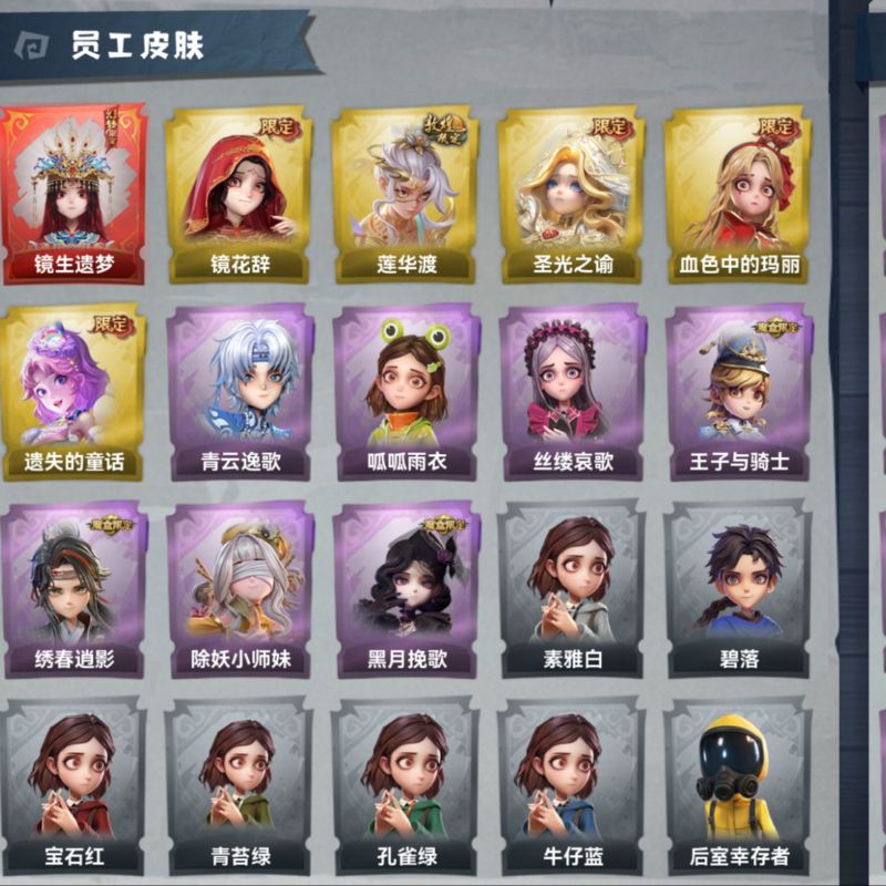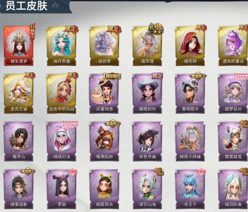 ZR777,红皮:1,金皮:7,紫皮:25,道具皮:67,服装:巫铃儿-镜生遗梦、薇薇安-海月息潮、莉莉-瑶台梦、逍遥-莲华渡、薇薇安-圣光之谕、爱丽丝-血色中的玛丽、小黄-遗失的童话、巫铃儿-镜花辞、艾伦-黎明猎手、阿念-庆宴绮愿、爱丽丝-耀眼的你、零-搬开山、爱丽丝-甜梦派对、艾伦-绒绒对决、莉莉-莓果陷阱、小黄-异色序曲、莉莉-除妖小师妹、薇薇安-黑月挽歌、阿念-王子与骑士、莉莉-情公主、艾