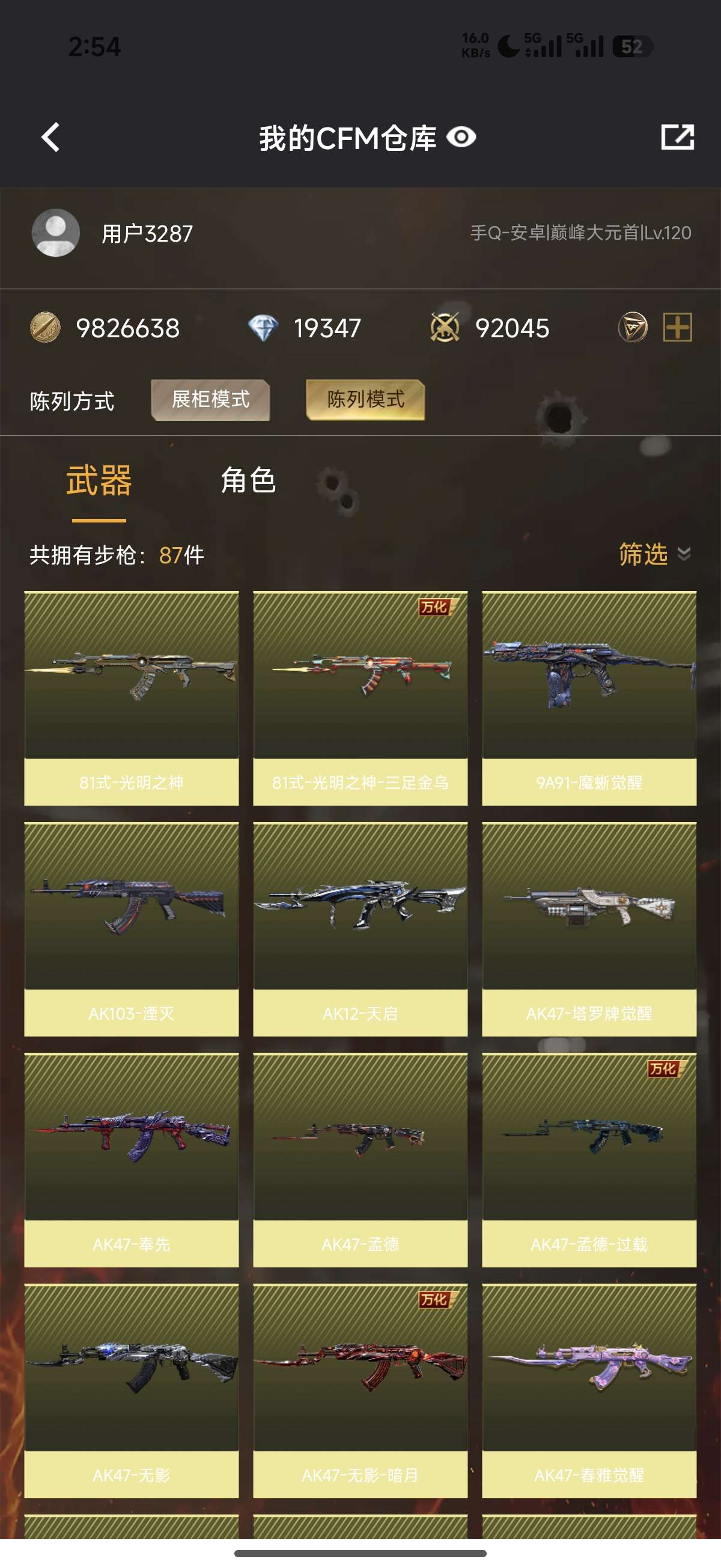 CF手游账号,英雄级AK47皮肤一套,孟先、孟德、孟德过载、奉先、王影,王幻都有,账号等级高