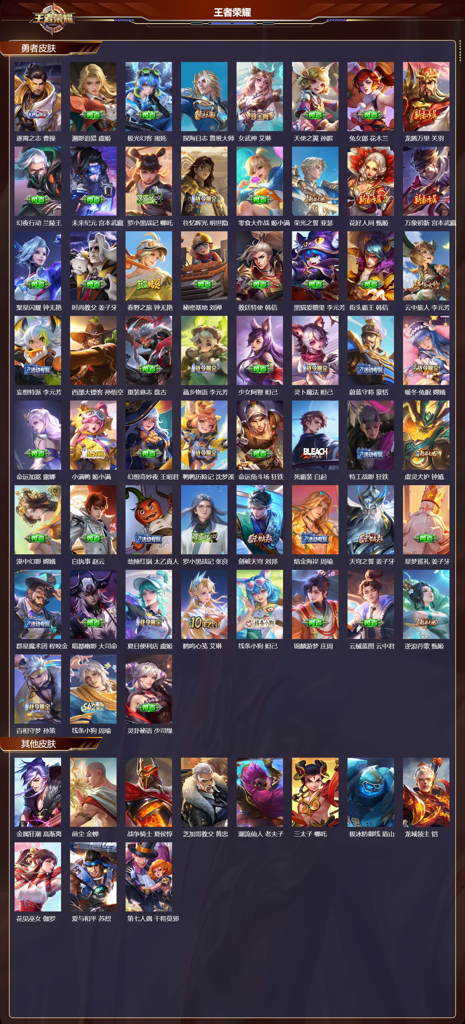 安卓微信/最强王者/255皮肤/128英雄/1典藏/0珍品无双/1无双/1珍品传