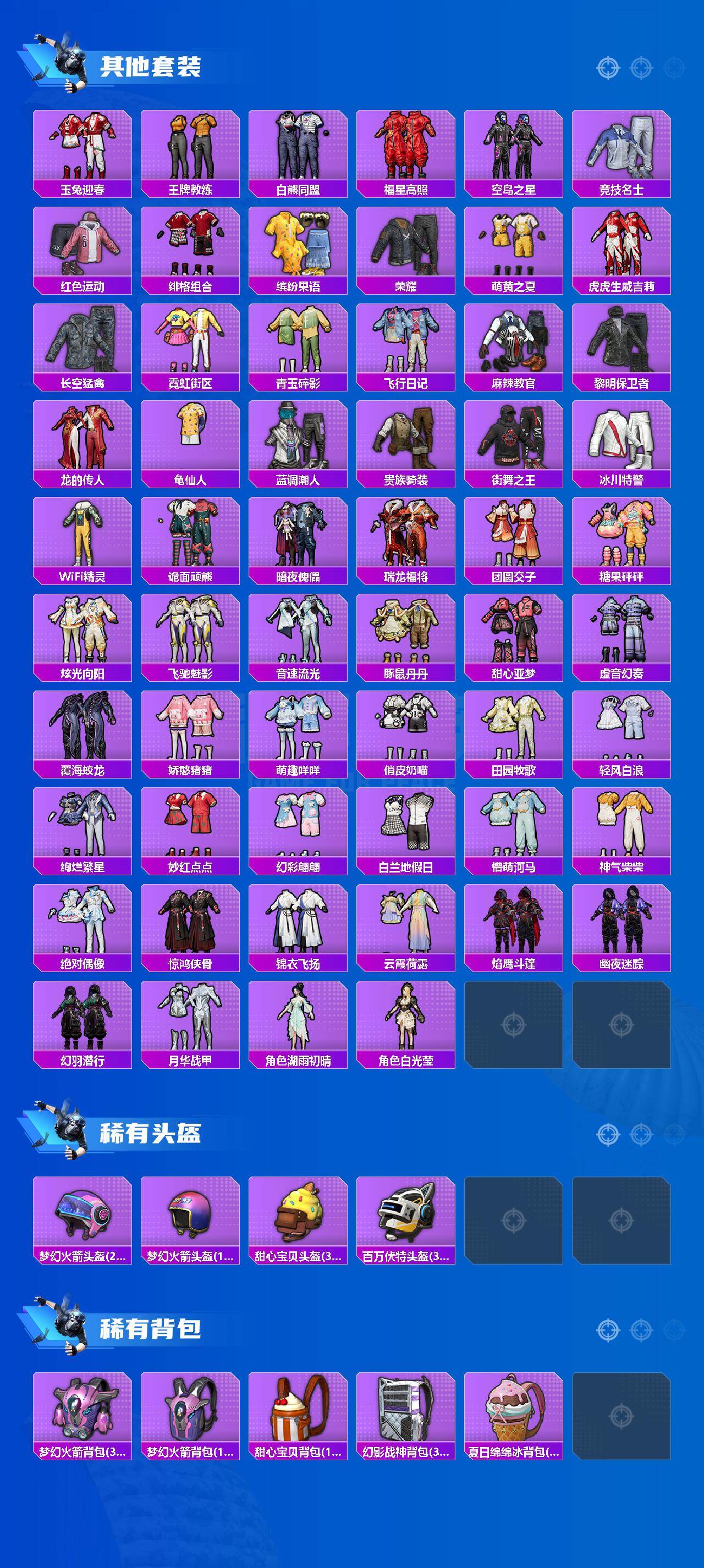 粉装6/粉枪4/载具1/珍稀飞行器72274,72313,/套装110/枪皮173/热力值53471/历史最高段位:王牌印记7次/Lv:56/七级AKM-星际浪客/四级UMP45-萌骑冒险/五级Kar98K-巳巳如意/五级DP-28-豹影疾电/套装-浪漫天命/军刀雅典娜/忍者信条/套装-龟仙人/宝贝奶油派/炙焰牛王/海螺星光/炫光之旅/室女星神/粉装-桃粉嫣然/路特斯EVIJA(星