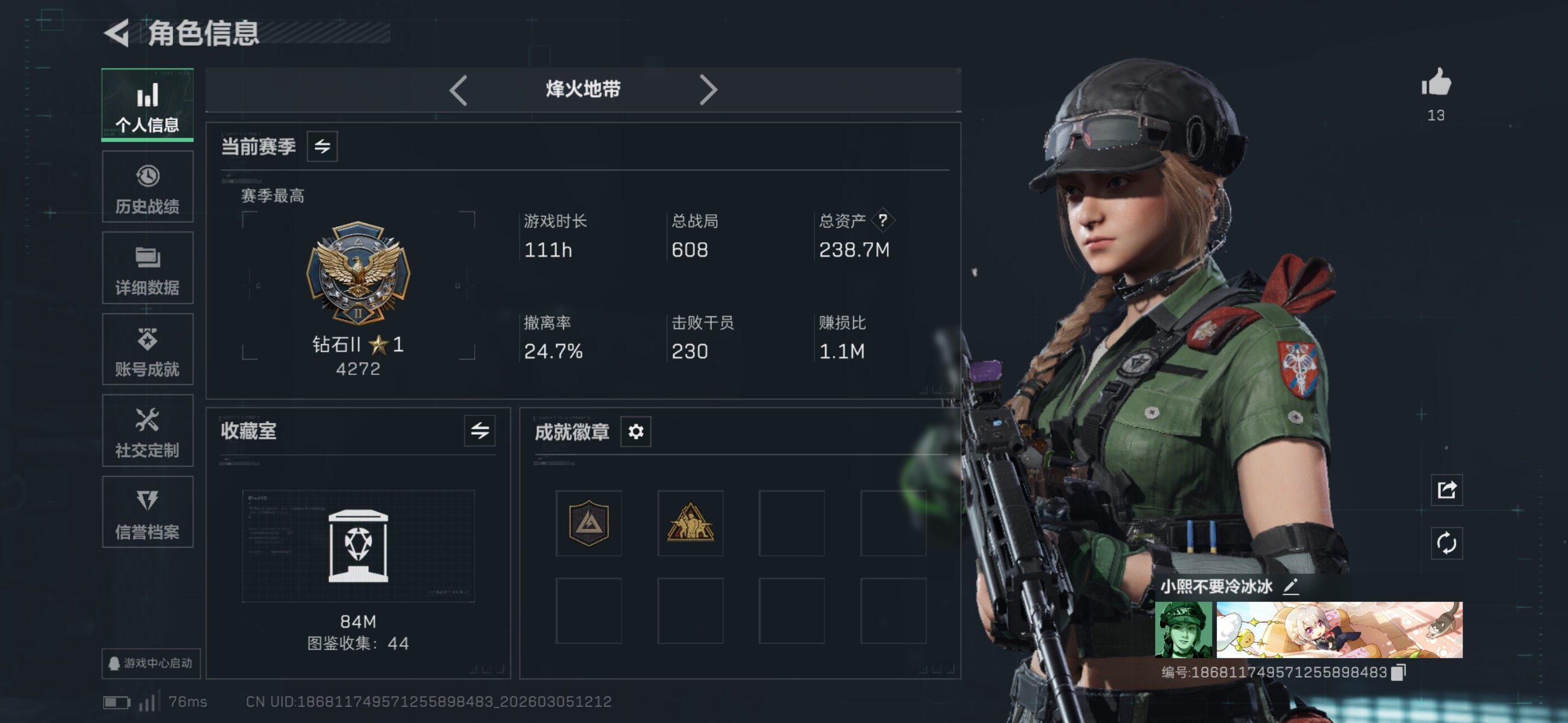 总资产(M):238M/哈夫币(K):330K/