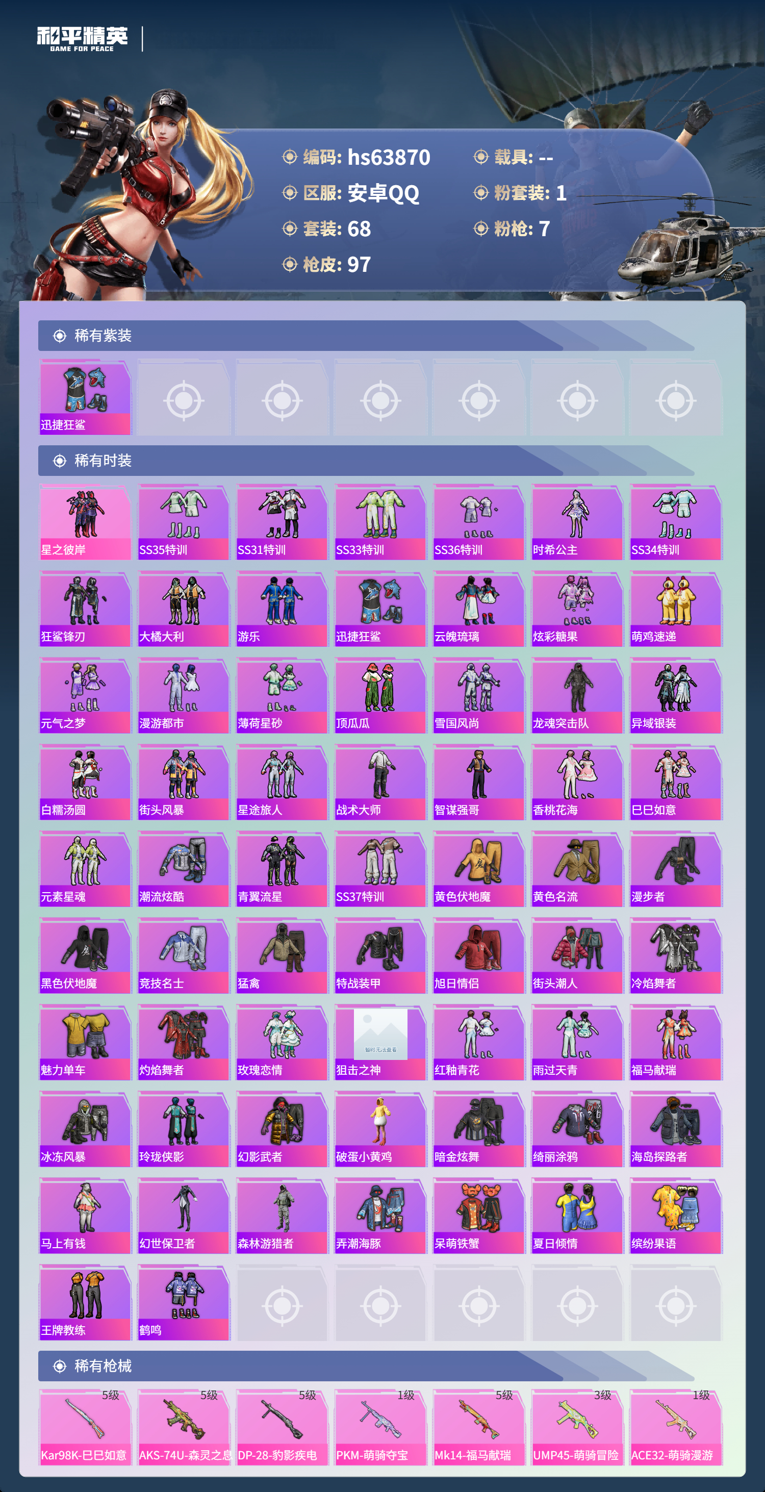 安卓手Q-1王牌印记-1粉装-7特效枪-24880热力值-68