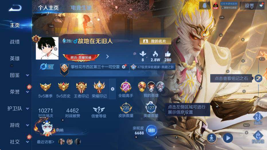 贵族8/皮肤235/典藏1/传说19/史诗49/英雄127/司空震全皮/全息碎影