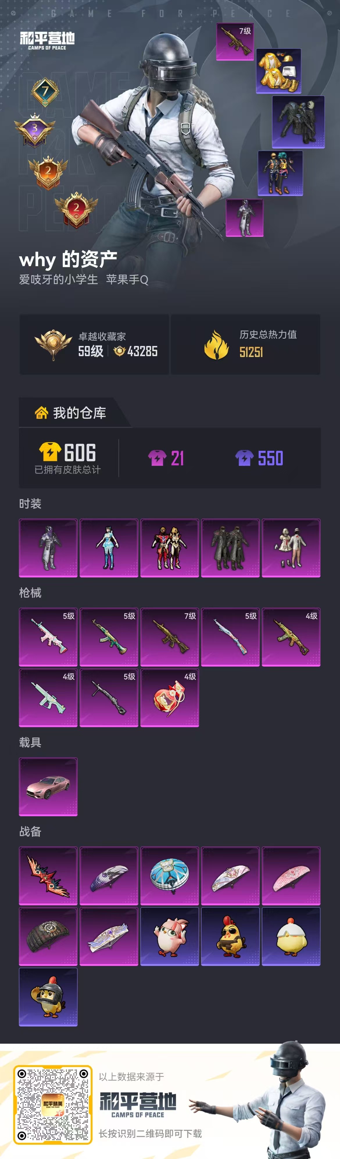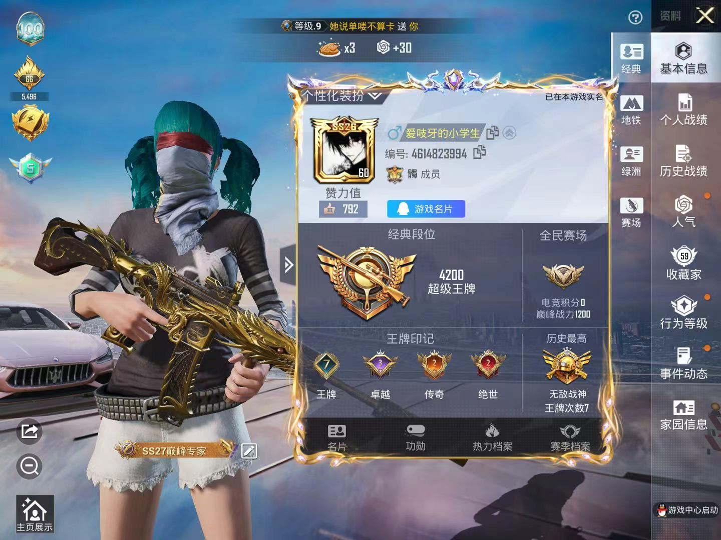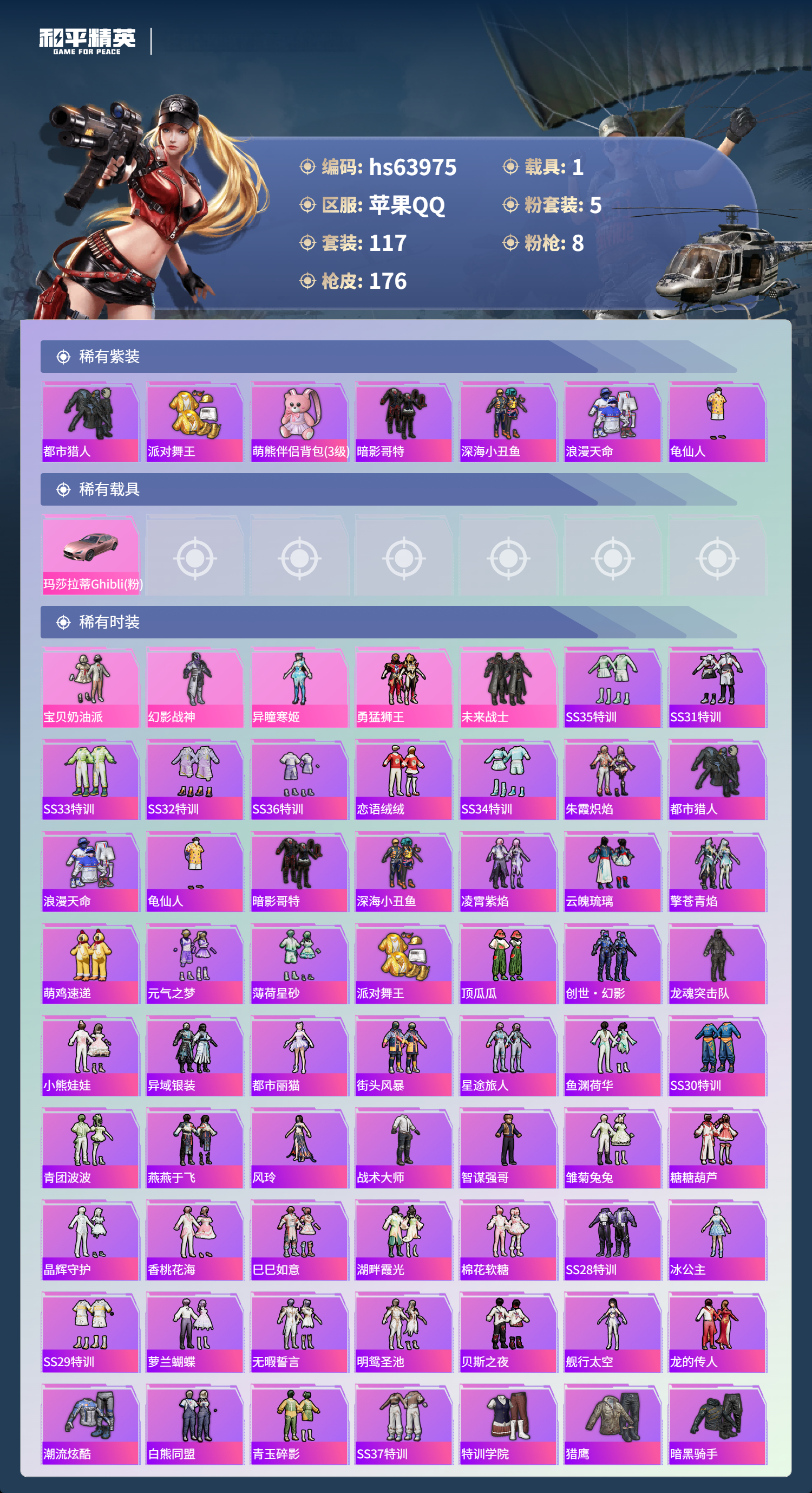 7王牌印记-有战神框-5粉装-8特效枪-1载具